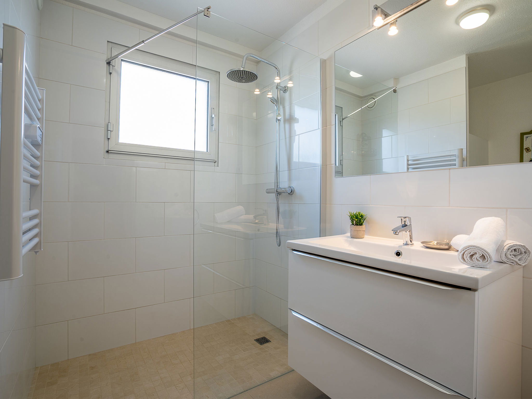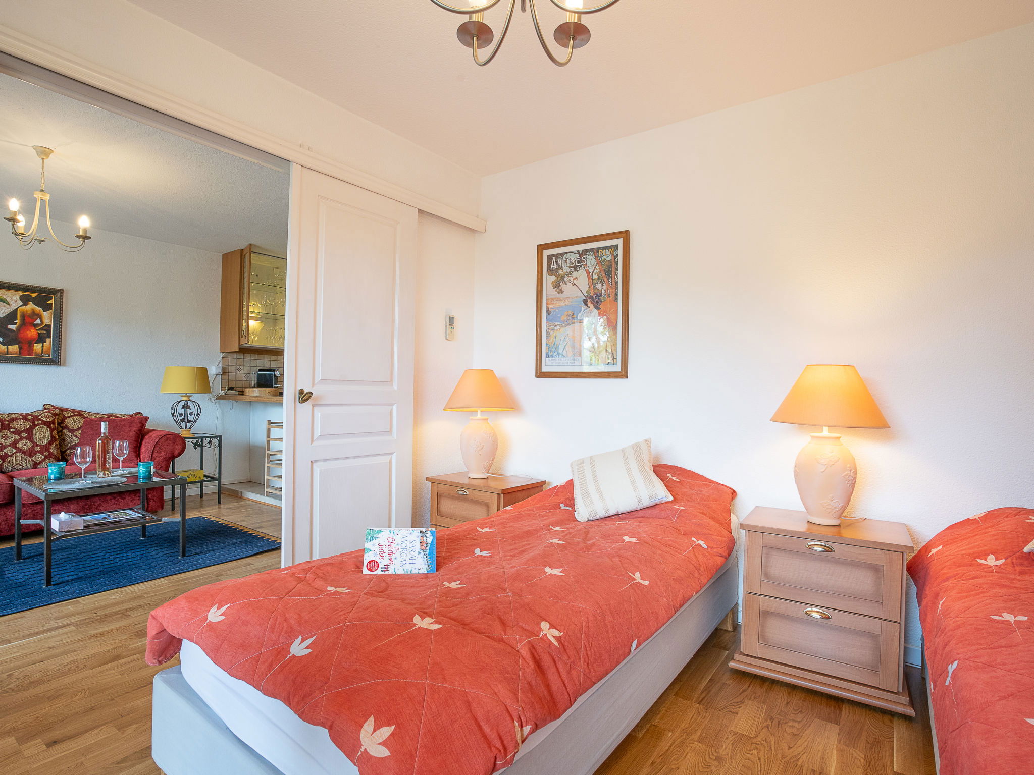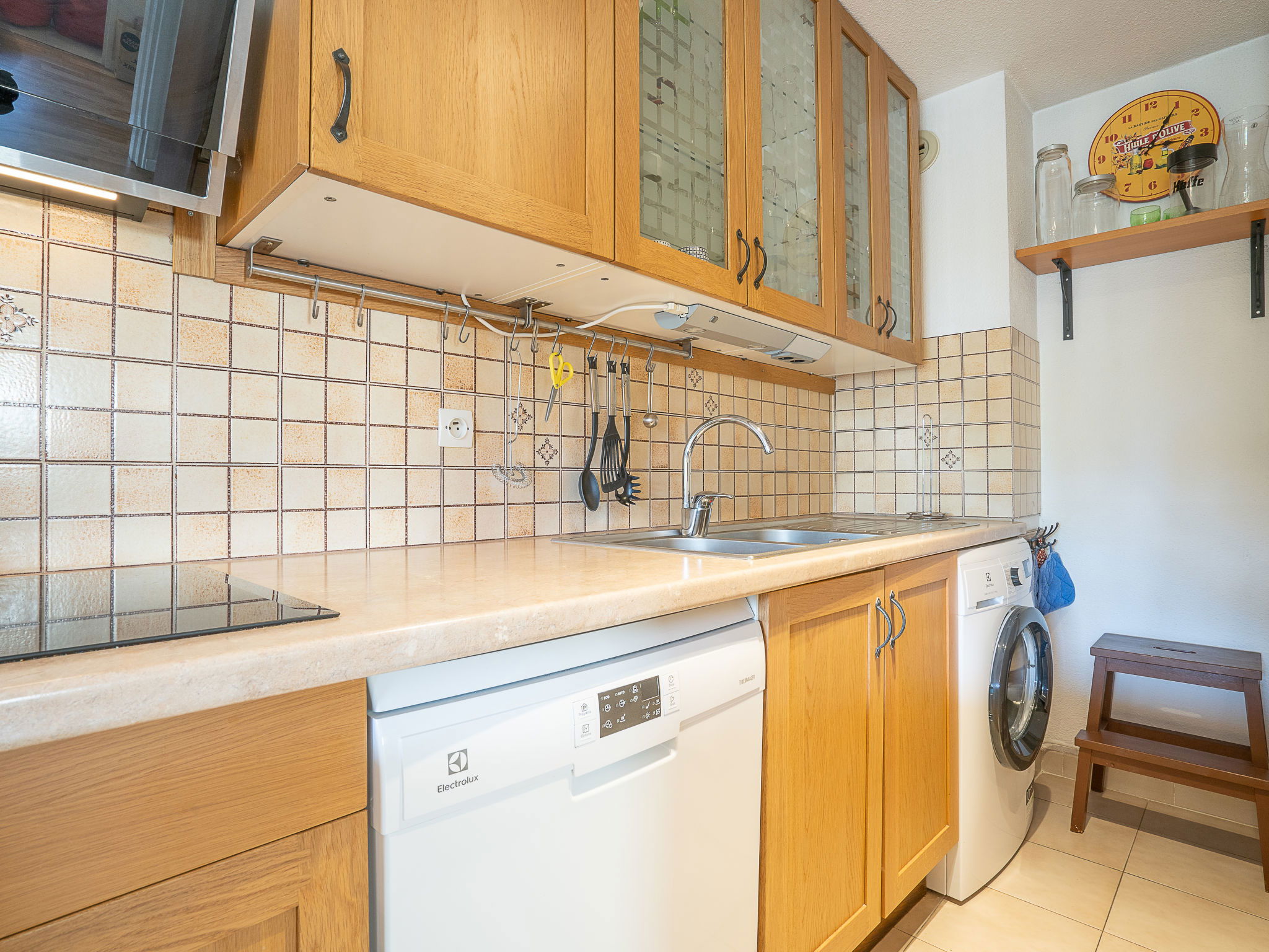 3-room apartment 55 m2 on 1st floor. Practical and comfortable furnishings: living/dining room with TV (flat screen), radio and CD-player. Exit to the terrace. 1 room with 1 french bed (1 x 160 cm, length 200 cm), air conditioning. 1 room with 2 beds (90 cm, length 190 cm), air conditioning. Exit to the terrace. Open kitchen (oven, dishwasher, 4 ceramic glass hob hotplates, electric coffee machine, Capsules for coffee machine (Nespresso) extra). Shower/WC. Forced-air heating. Large terrace 20 m2. Terrace furniture. Facilities: washing machine. Internet (WiFi, free). Parking at 300 m. Please note: non-smokers only. Smoke alarm. 06004193280CM