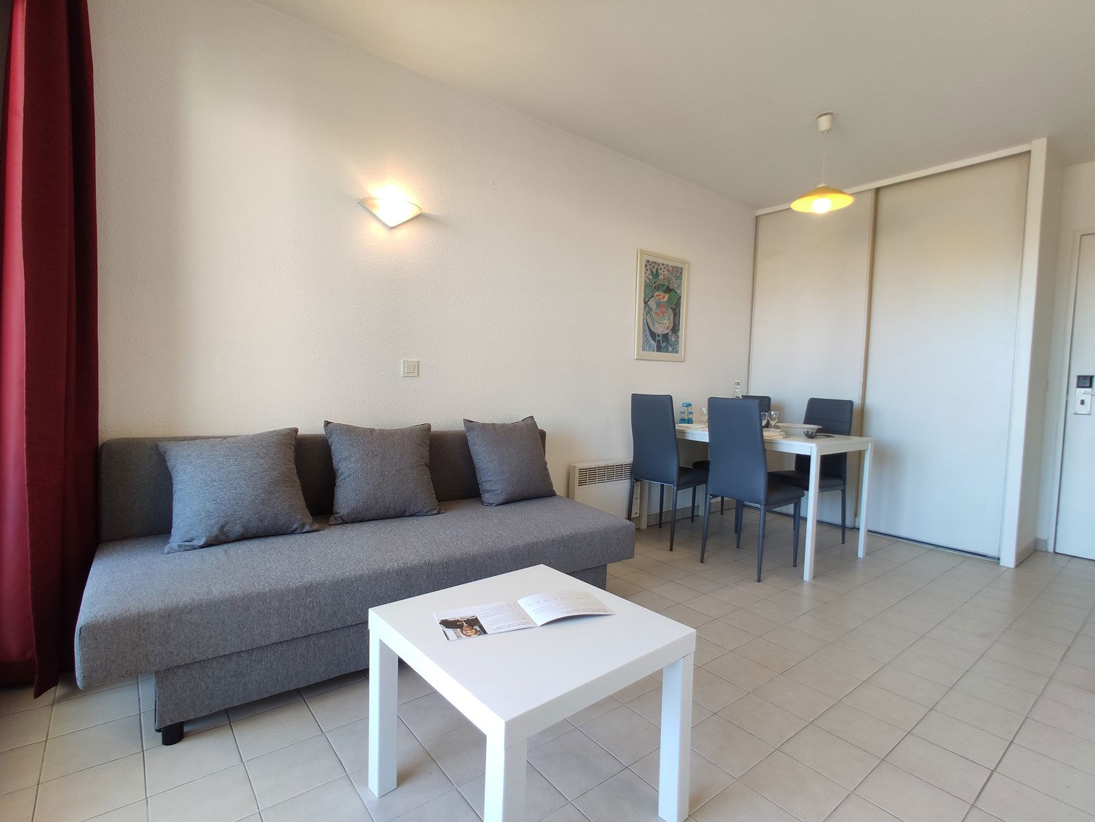 Juan les Pins (06) - Les Pins Bleus - 31m² - up to 4 people Located just 400 meters from the beach and at the foot of the shops, the "Les Pins Bleus" holiday residence offers an ideal setting for a successful stay. This seaside rental consists of a beautiful living room with a new 140cm sofa bed, an open fitted kitchen, a bedroom with a 140cm double bed, a bathroom and separate toilet, no parking. A pleasant terrace completes this property. The advantages of this holiday apartment: an ideal location close to the shops and the sea, a swimming pool (subject to health developments linked to the COVID-19 situation)
