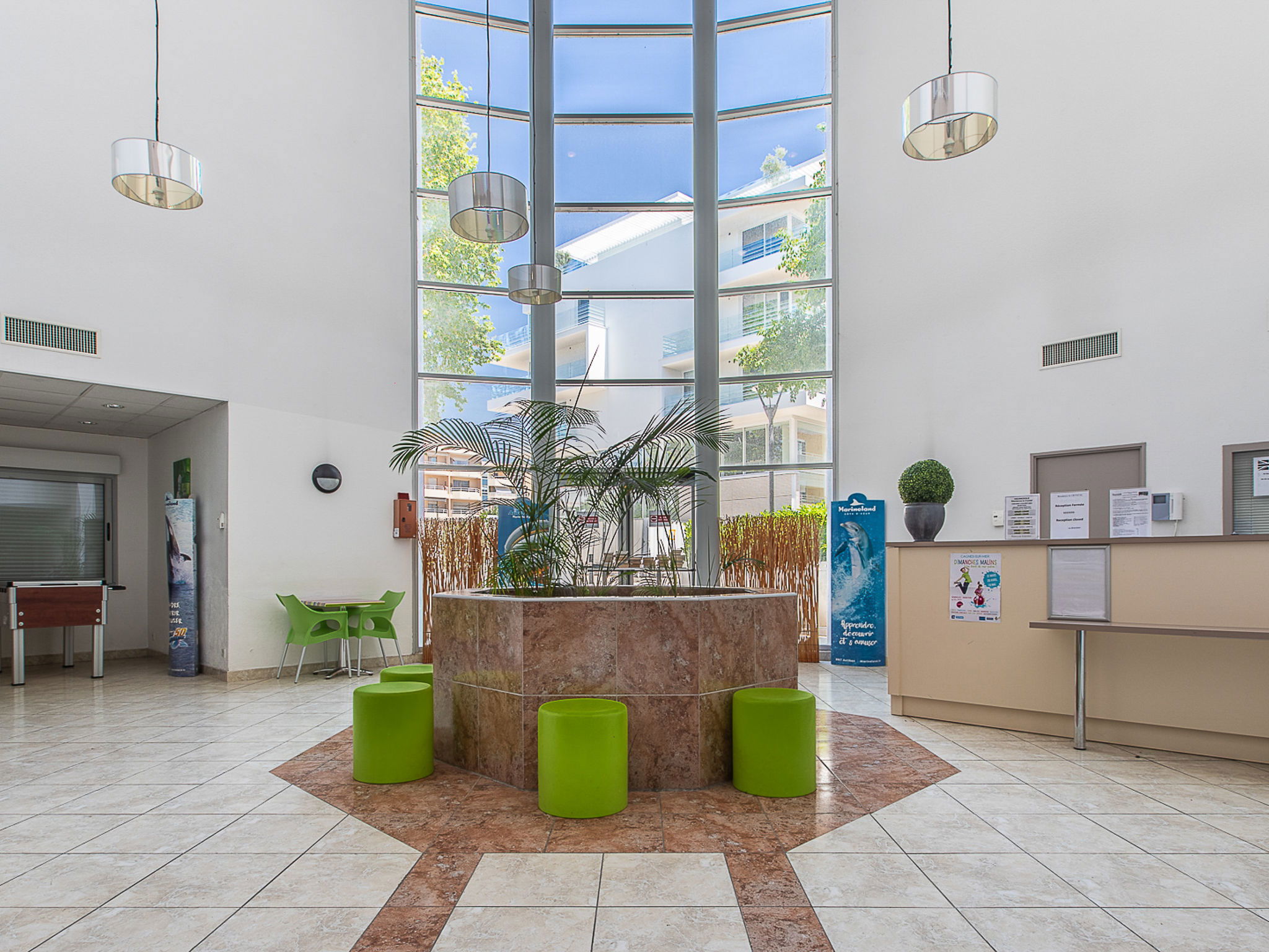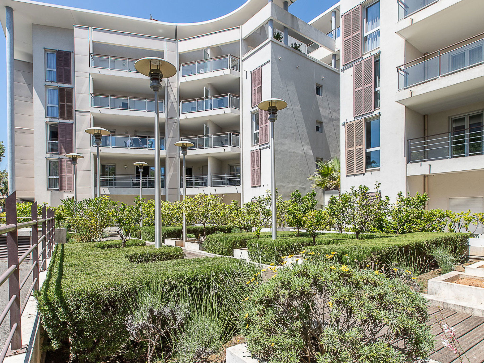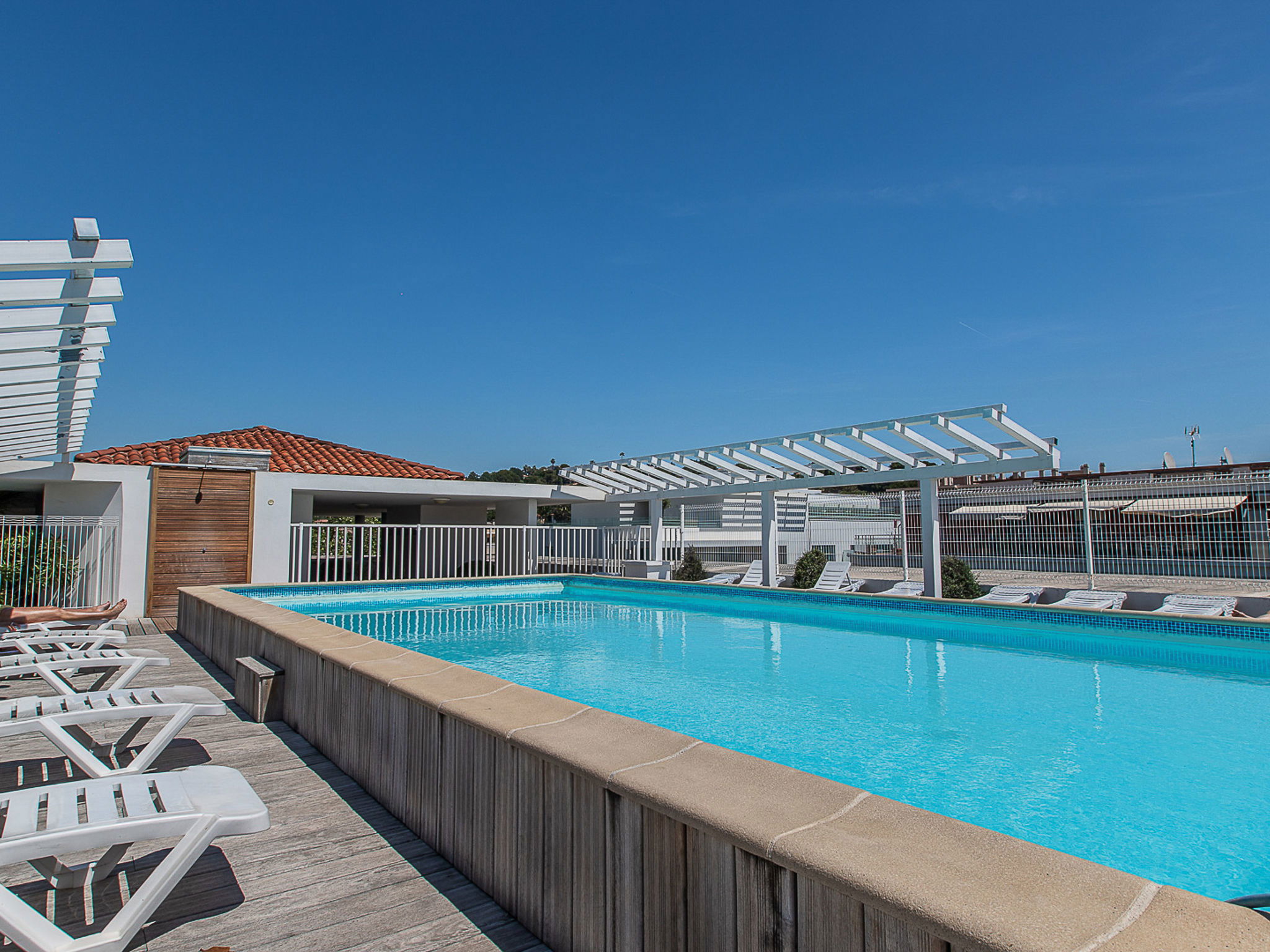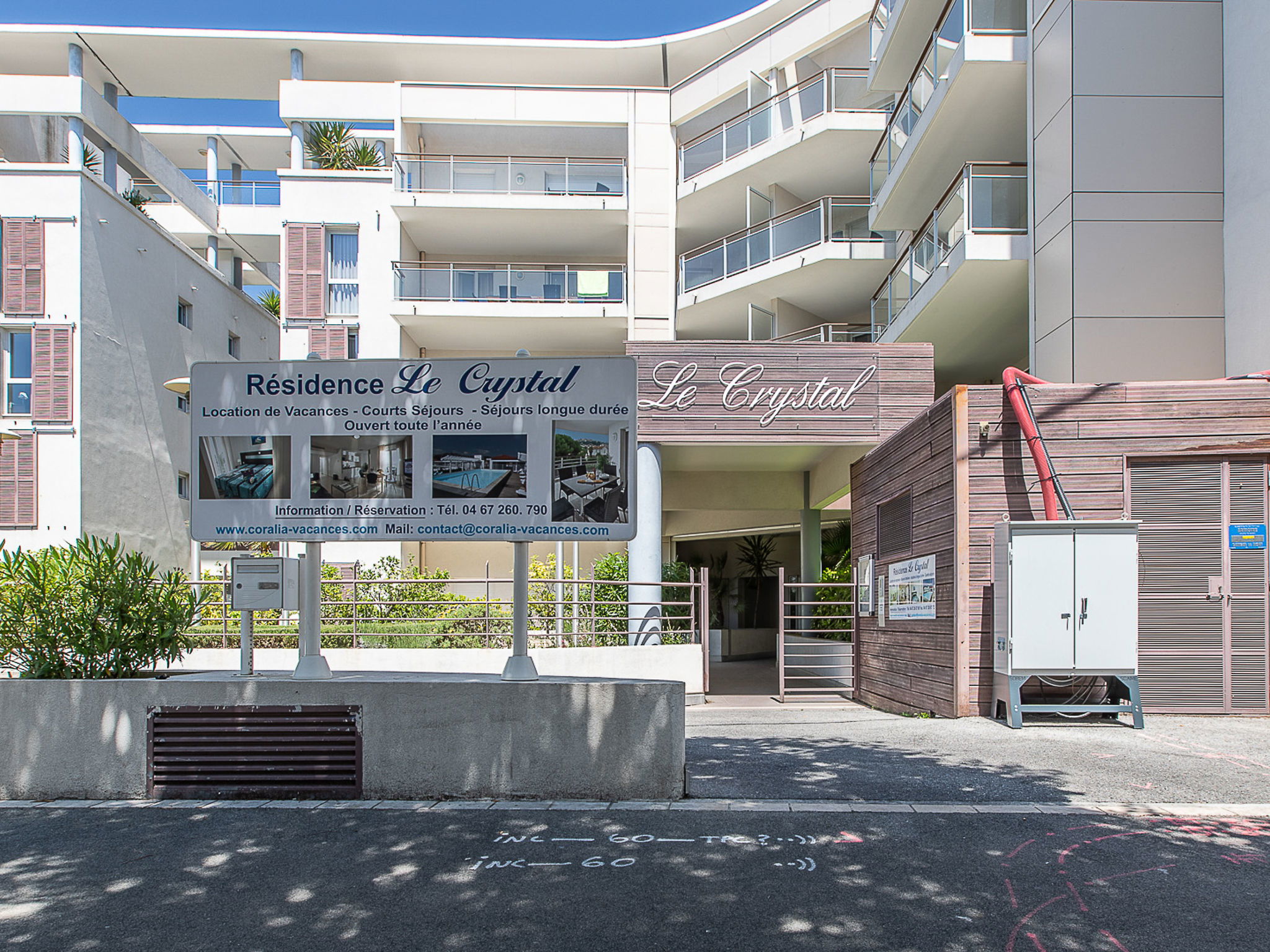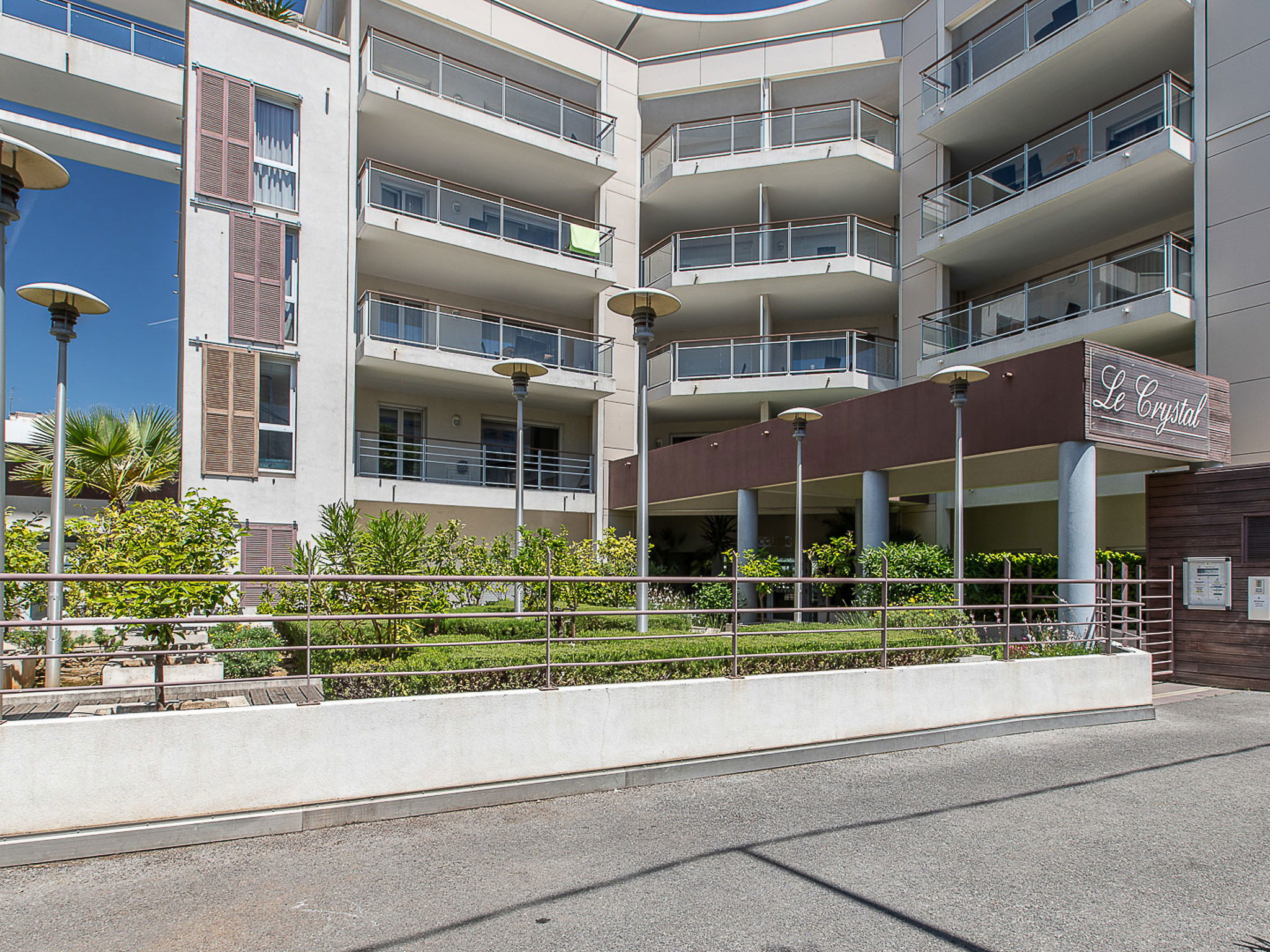 Residence "Le Crystal", 4 storeys. 79 apartments in the residence. 500 m from the centre of Cagnes-sur-Mer, 10 km from the centre of Nice, 22 km from the centre of Cannes, 1.5 km from the sea. For shared use: swimming pool fenced (10 x 5 m, depth 150 cm, seasonal availability: 15.May. - 30.Sep.). WC in the pool area, outdoor shower, table tennis. In the complex: reception, WiFi, table football, lift, washing machine, tumble dryer (for shared use, extra). Communal covered parking (extra). Shop 100 m, pebble beach 1.5 km. Please note: the photograph shows a typical example. The holiday properties may differ in living space, floorplan, equipment and furnishing.