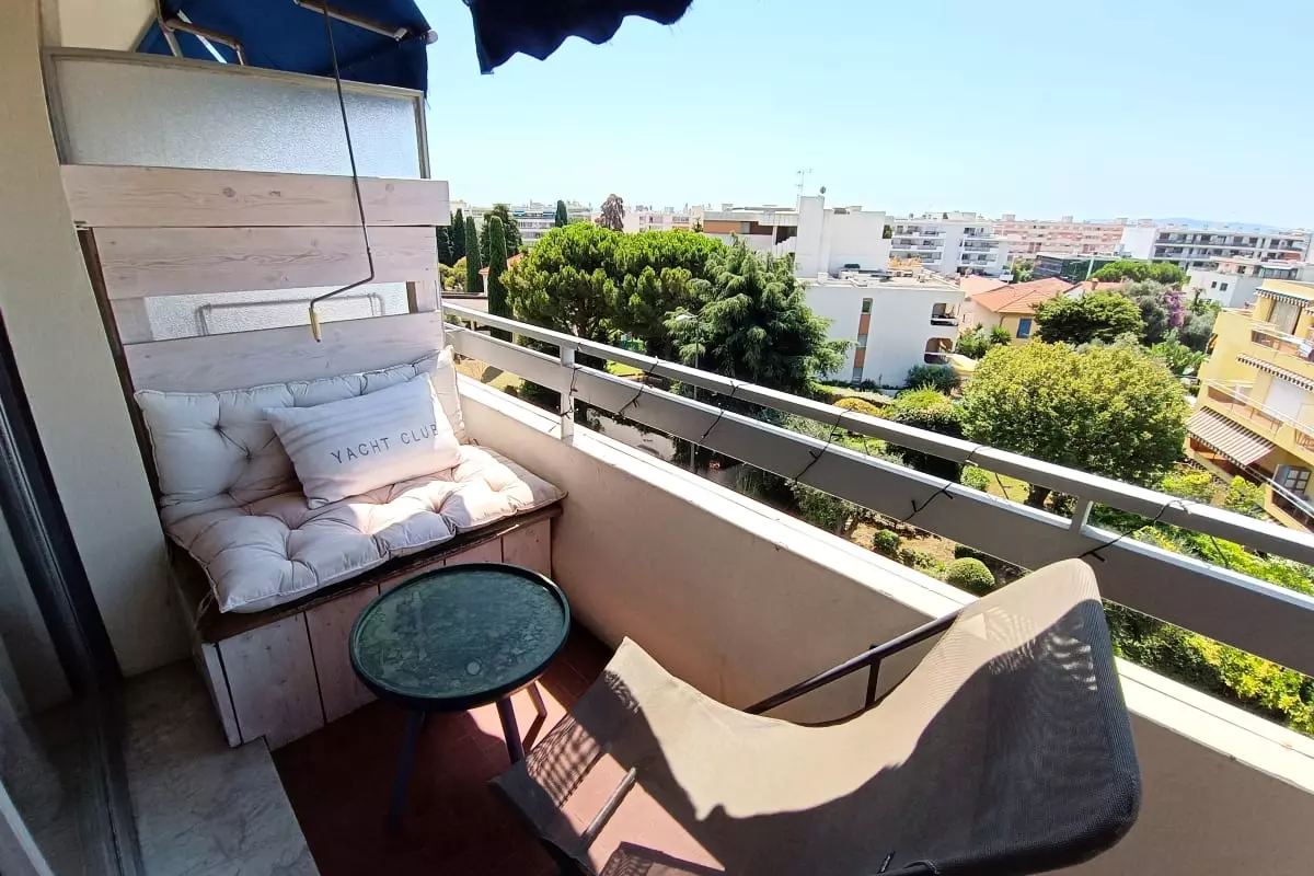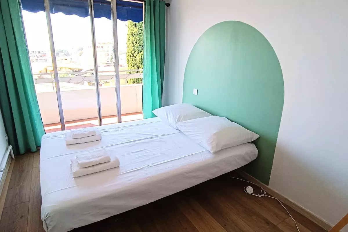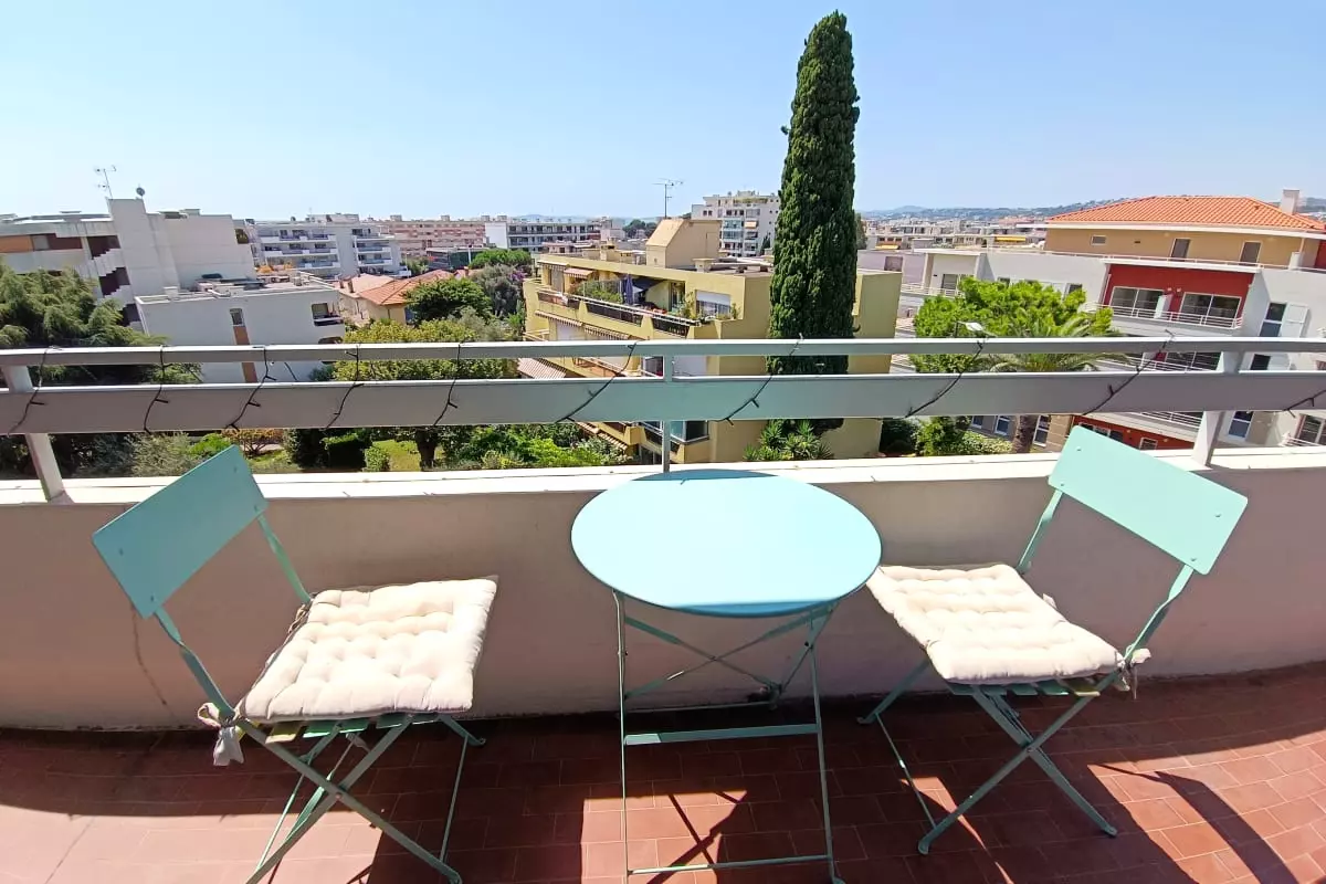 With an area of 60 m², air-conditioned, it includes 2 bedrooms with several storage spaces, a private parking space, a lovely corner balcony with a glimpse of the sea and overlooking the castle of Cagnes and can accommodate up to 5 people.