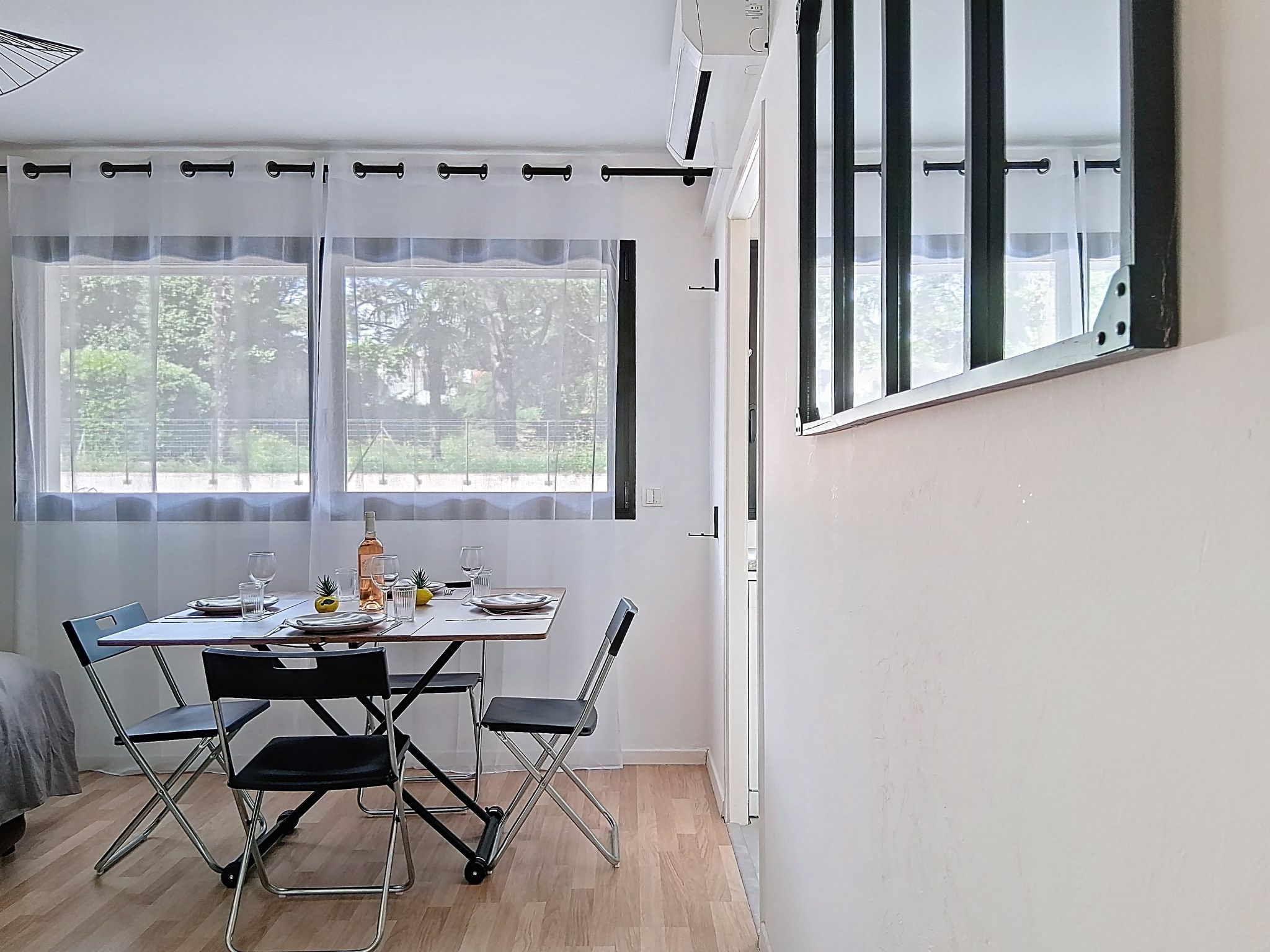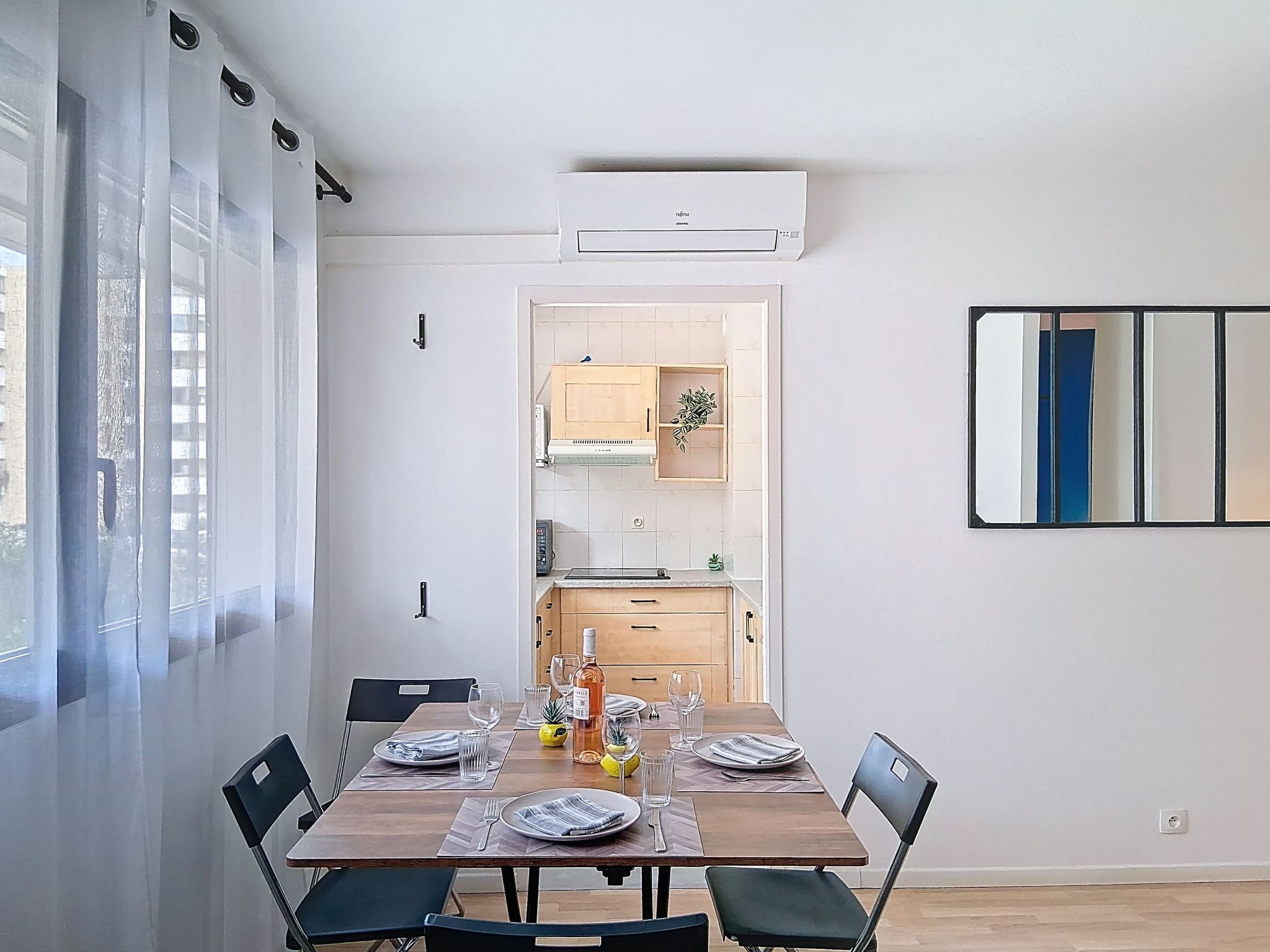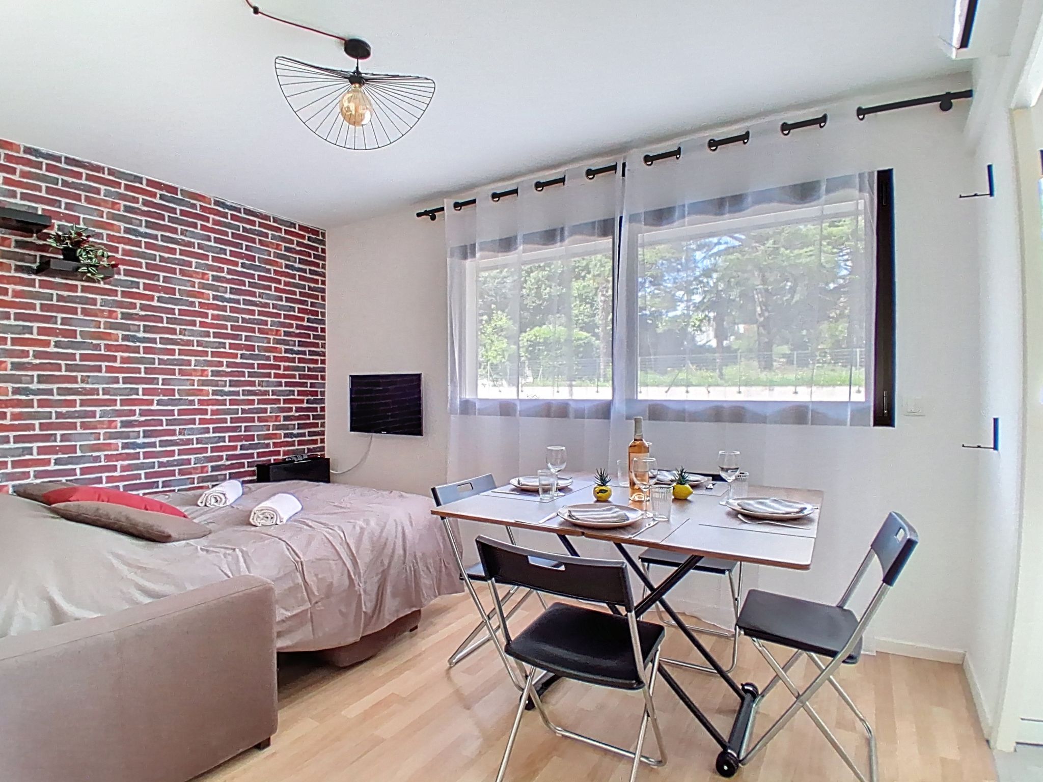 "Le Maresol", 1-room studio 26 m2 on 1st floor, north facing position. Renovated, beautiful furnishings: living/sleeping room with 1 double sofabed (1 x 140 cm, length 200 cm), TV, flat screen and air conditioning. Alcove with 1 double bed (1 x 140 cm, length 200 cm). Kitchen (dishwasher, 1 ceramic glass hob hotplate, toaster, kettle, microwave, freezer, electric coffee machine). Bathroom, bath/WC or shower/WC. Facilities: iron, hair dryer. Internet (WiFi, free). Please note: apartment carpark side. Non-smokers only. Smoke alarm. Offer by a private individual according to Art. 155, IV of CGI. 06027040816SB