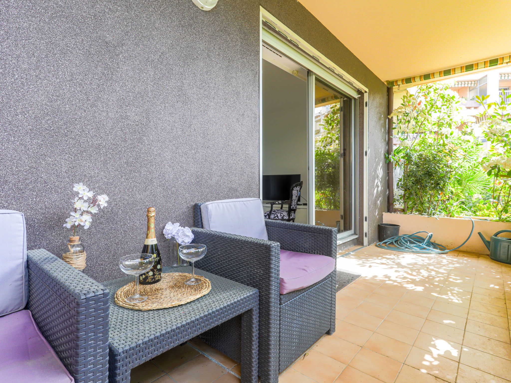 2-room apartment 50 m2, on the ground floor. Bright, fully renovated in 2024, comfortable and modern furnishings: living/dining room with panoramic window with 1 double sofabed (140 cm, length 190 cm), TV (flat screen), electric shutters. Exit to the terrace. 1 room with 1 french bed (160 cm, length 200 cm). Exit to the terrace, south facing position. Open kitchen (oven, 4 induction hot plates, toaster, kettle, microwave, electric coffee machine, Capsules for coffee machine (Nespresso) extra) with dining table. Bath/shower/WC. Electric heating. Terrace 12 m2, south facing position. Terrace furniture. Marvellous view of the sea, the mountains and the garden. Facilities: washing machine, iron, hair dryer. Internet (WiFi, free). Garage, height 184 cm, width 200 cm. Please note: non-smokers only, parking space for small car only. Maximum 1 pet/ dog allowed. Smoke alarm. Offer by a private individual according to Art. 155, IV of CGI. 06059031779WF