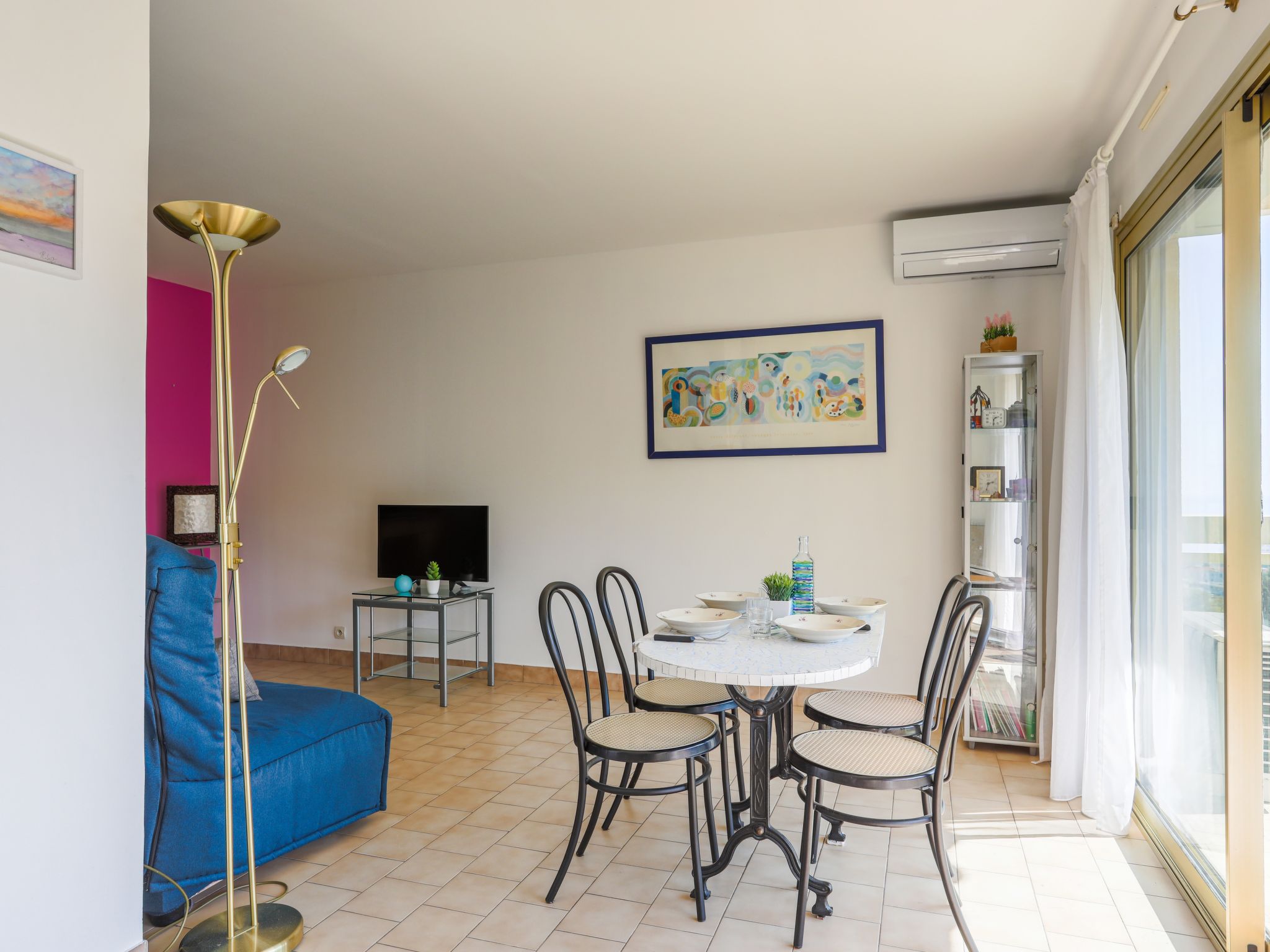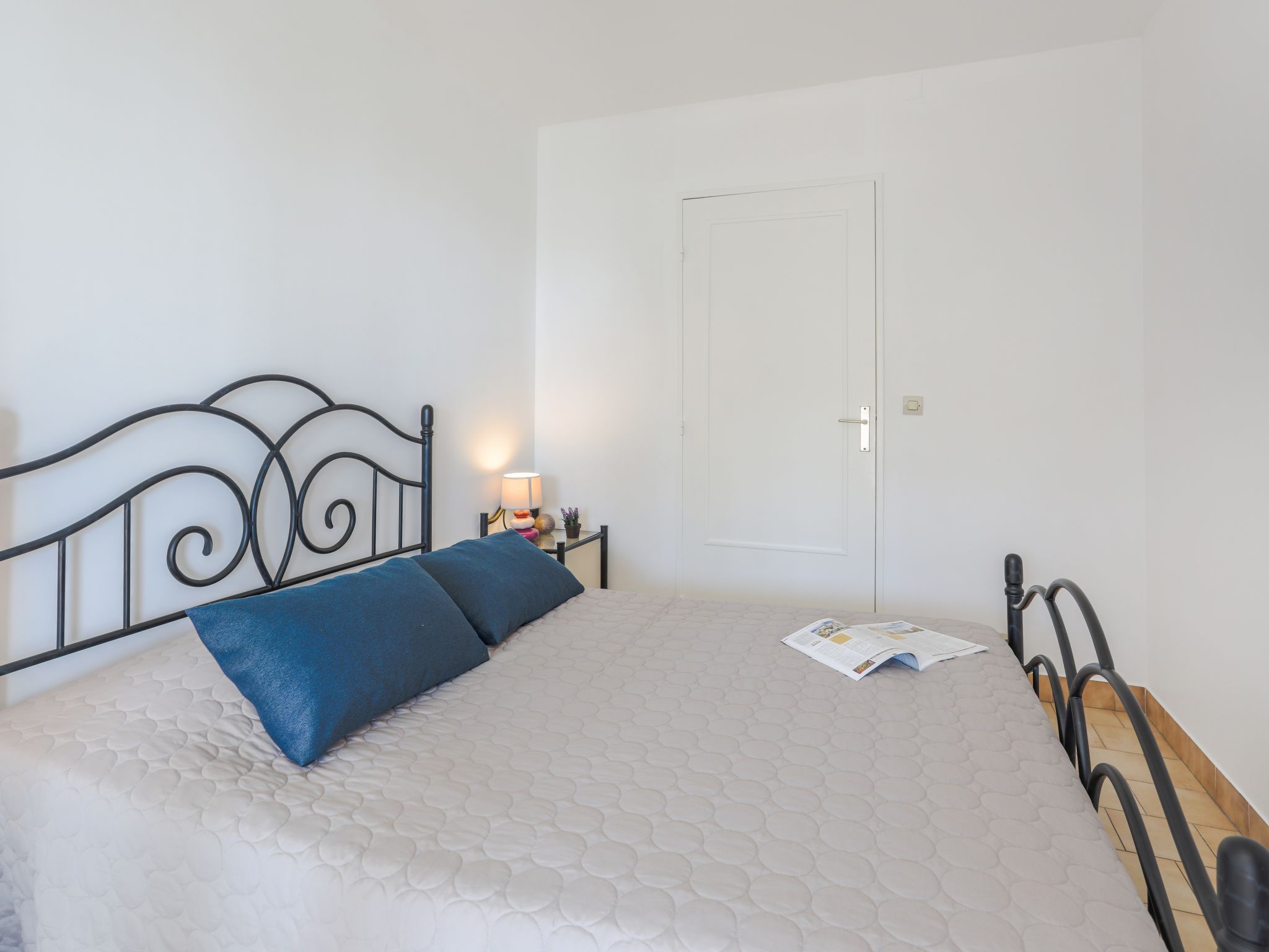 2-room apartment 48 m2 on 3rd floor. Bright, simple and beautiful furnishings: living/dining room with 1 double sofabed (140 cm, length 190 cm), TV, radio and air conditioning. Exit to the terrace. Alcove with 1 french bed (140 cm, length 190 cm). Open kitchen (dishwasher, 4 ceramic glass hob hotplates, toaster, kettle, microwave, freezer, electric coffee machine). Exit to the terrace. Sep. WC, bath or shower. Electric heating. Terrace 9 m2, west facing position. Terrace furniture, deck chairs. Beautiful distant view of the sea. Facilities: washing machine, iron, hair dryer. Internet (WiFi, free). Garage space n 12 (1 car). Please note: non-smokers only. Smoke alarm. Instead of an enclosed bedroom, some sleeping areas are located in an open-plan area (gallery, alcove, etc.). 06088000819IR