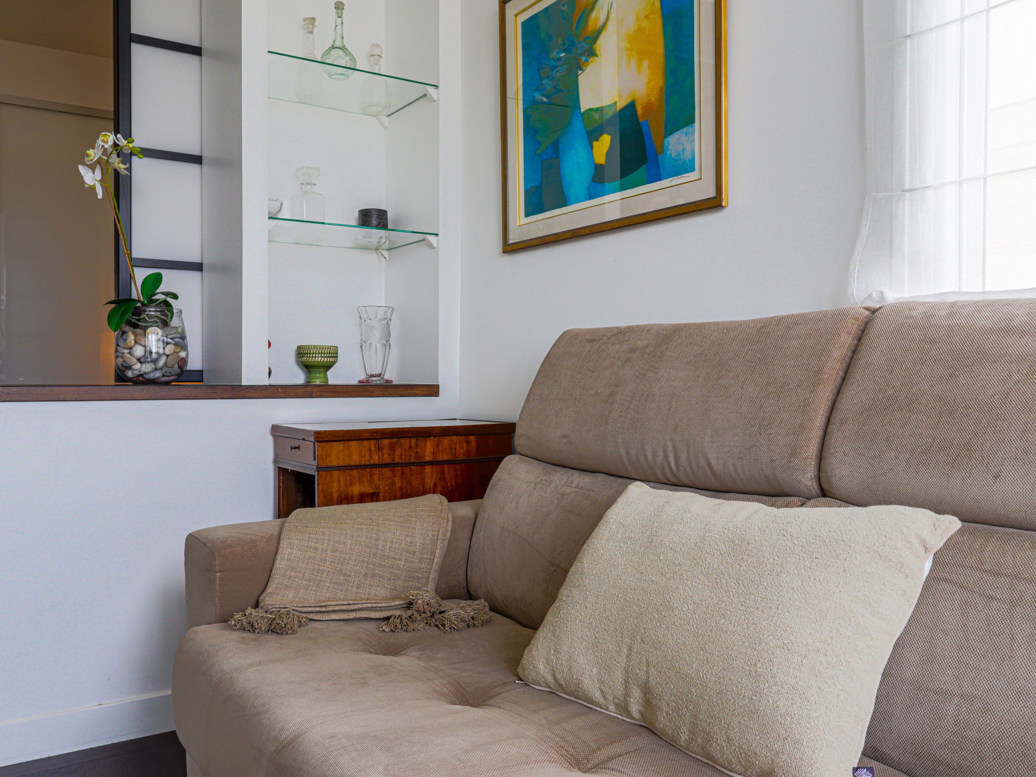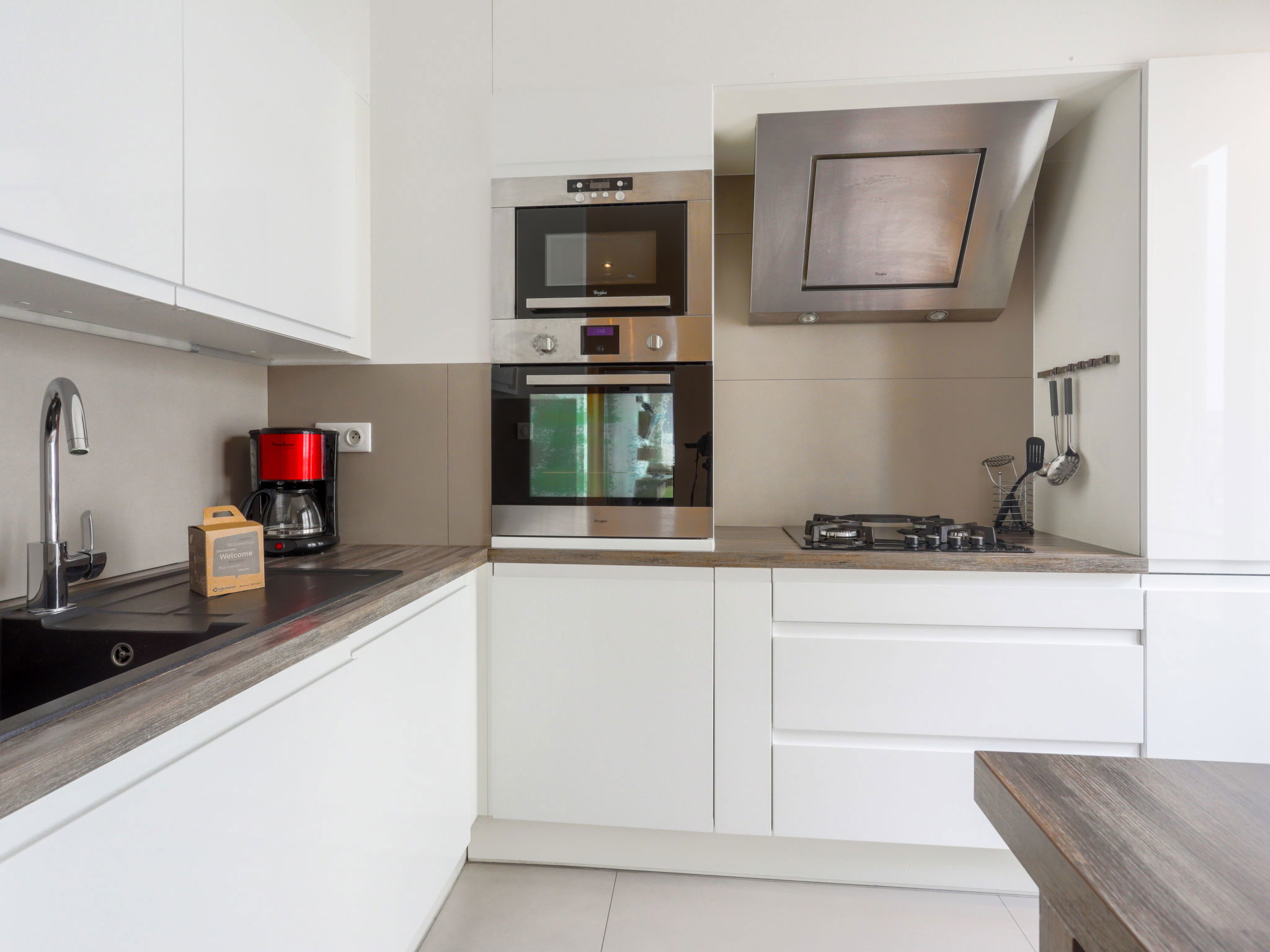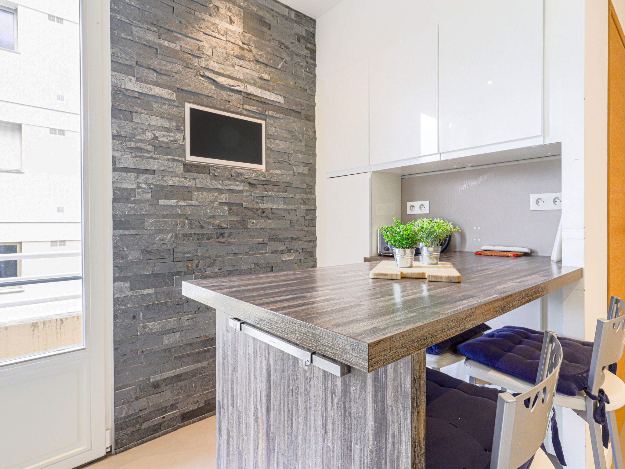 1-room apartment 43 m2 on 3rd floor. Beautiful and modern furnishings: living room with 1 double sofabed (140 cm, length 190 cm), 1 french bed (160 cm, length 190 cm), TV (flat screen). Exit to the terrace. Kitchen (oven, dishwasher, toaster, kettle, microwave, freezer, electric coffee machine) with bar, TV (flat screen). Shower, sep. WC. Heating, air-conditioning. Terrace 6 m2, south facing position. Terrace furniture. Facilities: washing machine, hair dryer. Internet (WiFi, free). Garage space n XXIII (1 car). Please note: non-smokers only. Smoke alarm. 06088000869YB