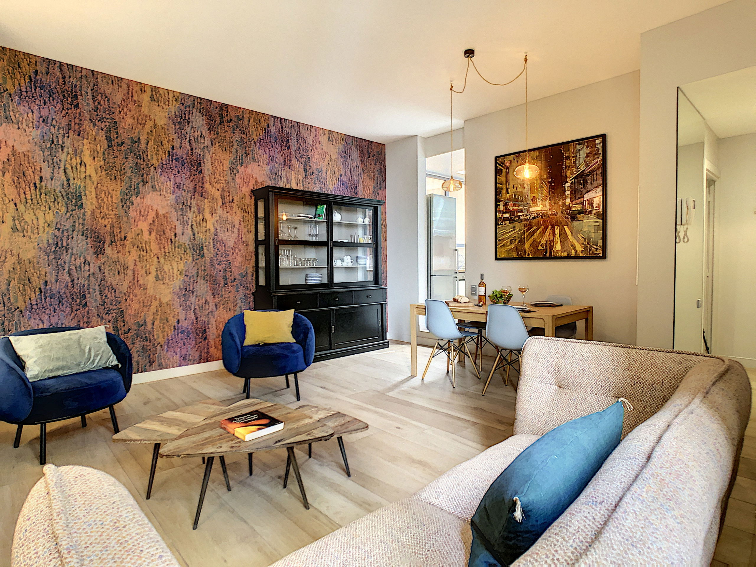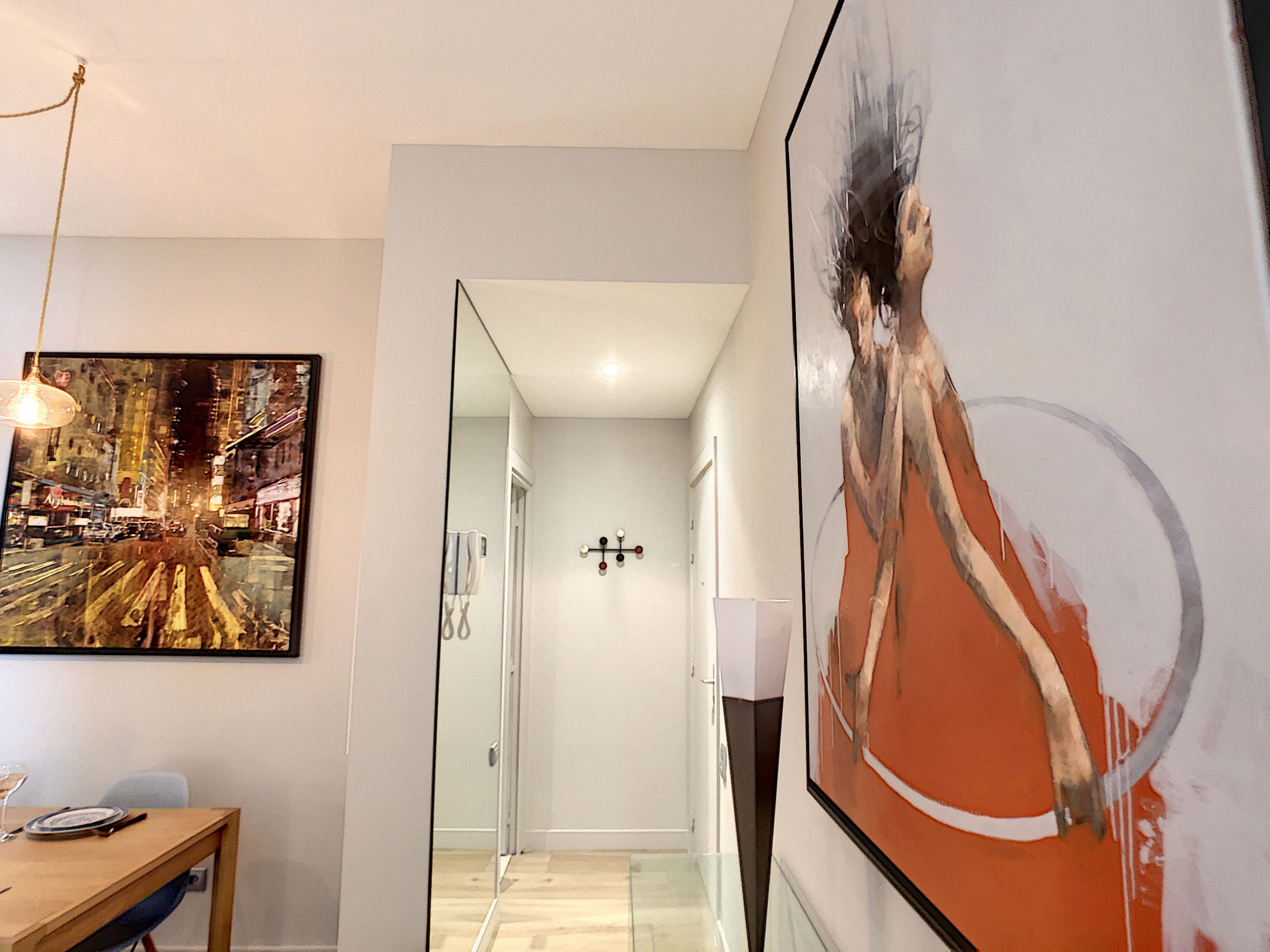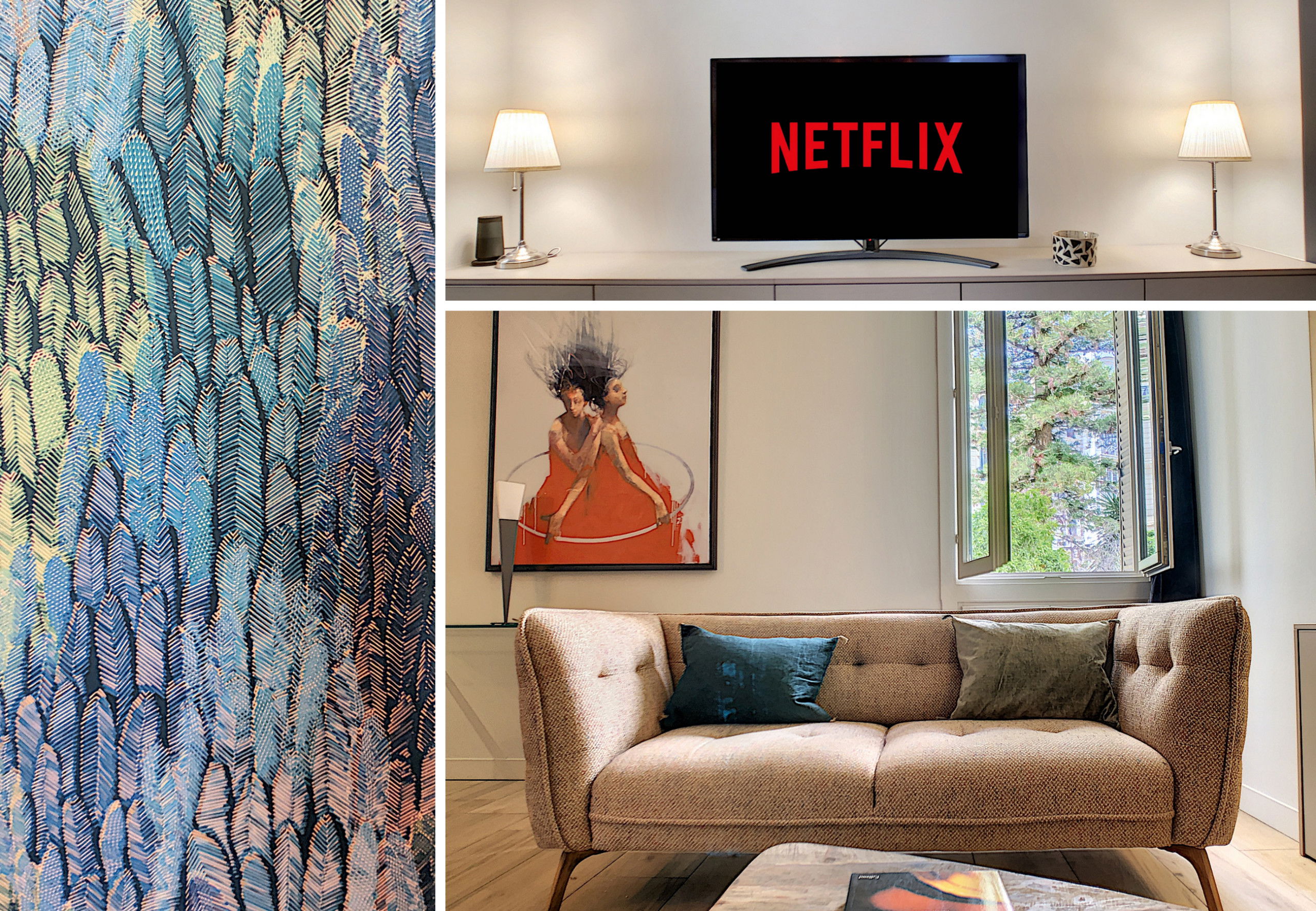The decoration is contemporary. You will appreciate the high quality materials used such as the natural wood of the parquet and furniture and the elegant fabrics such as the linen of the cushions and the satin armchairs.
