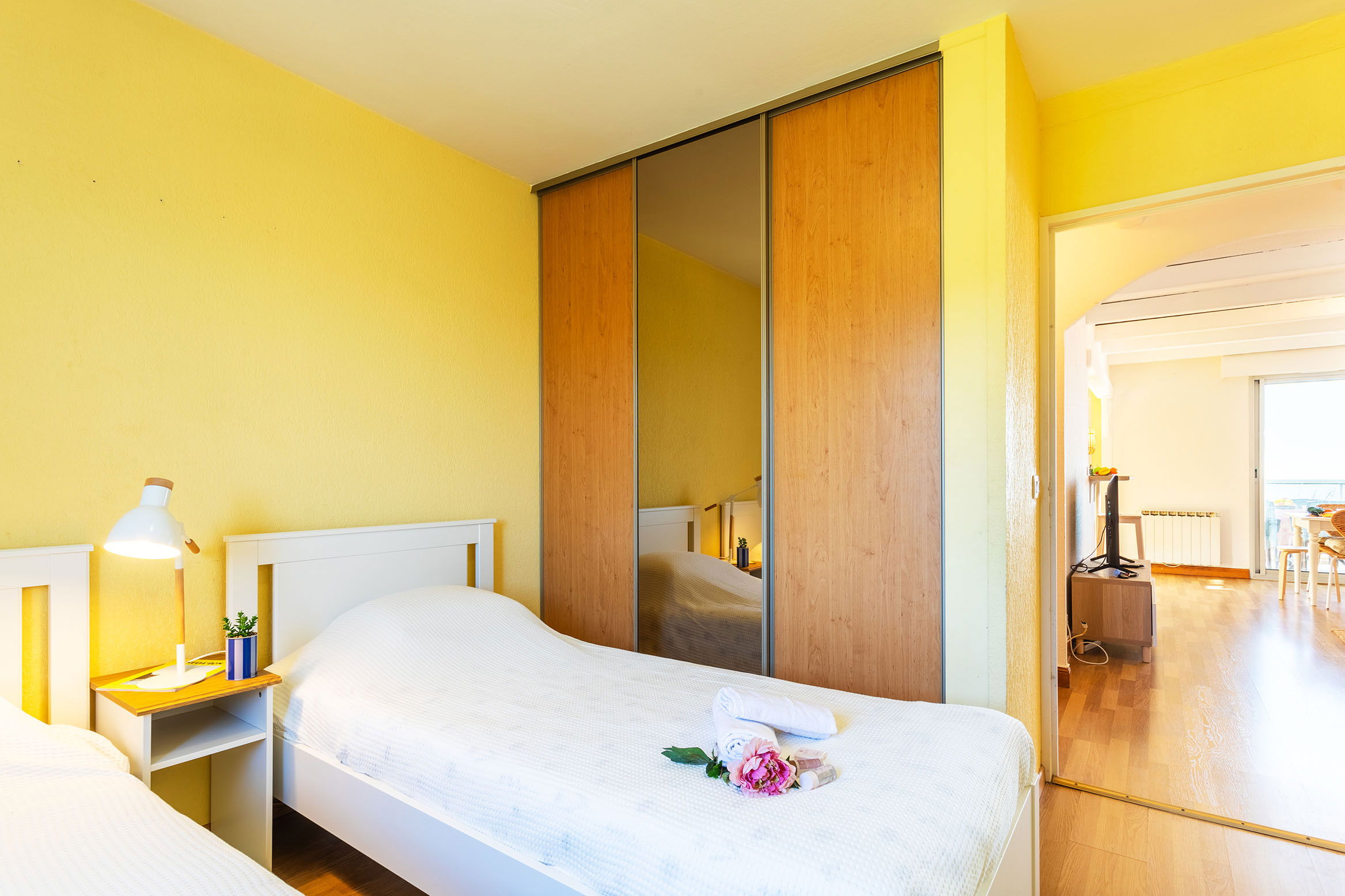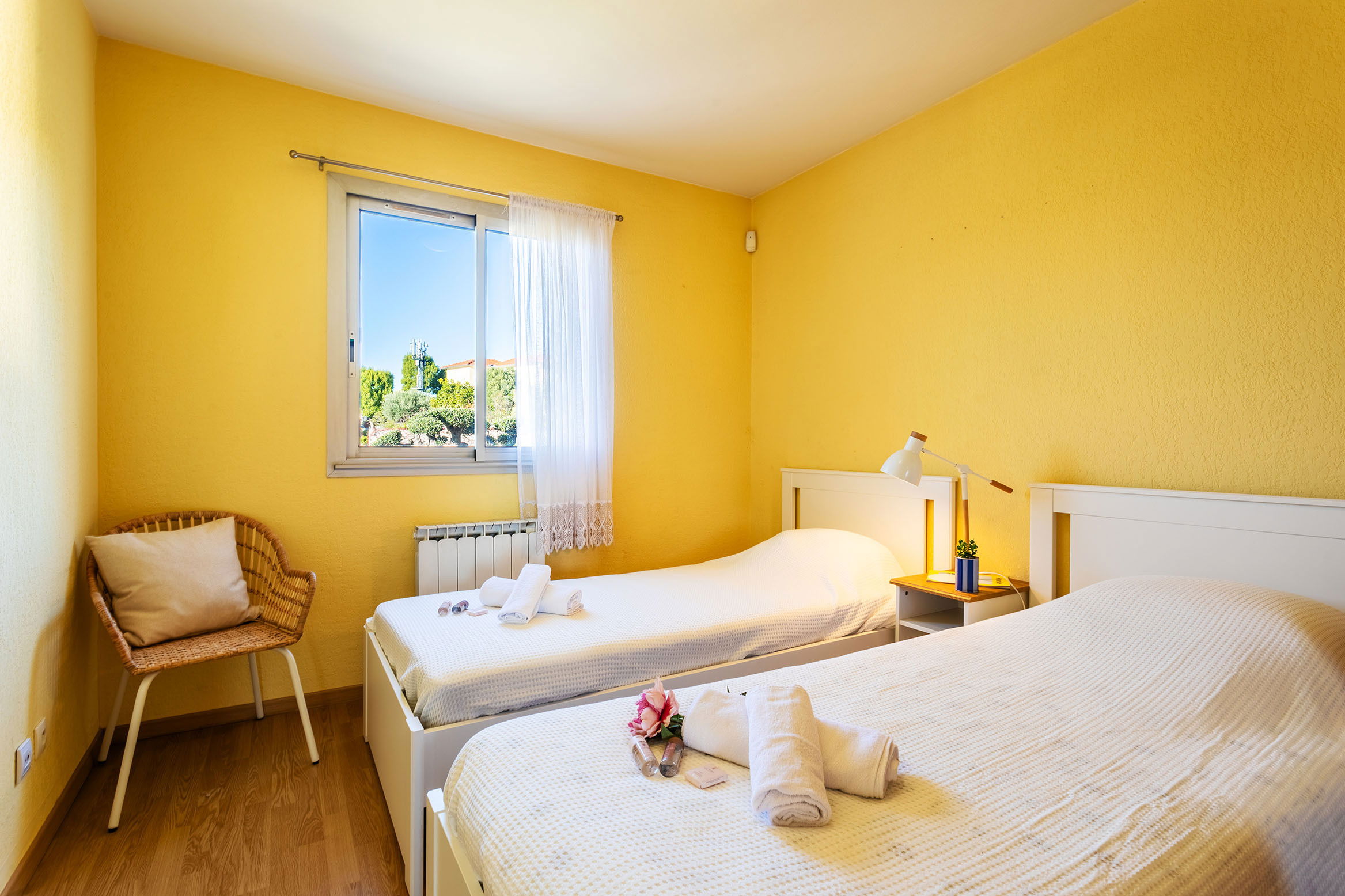 2 bedrooms, one with a double bed and the other with 2 single beds