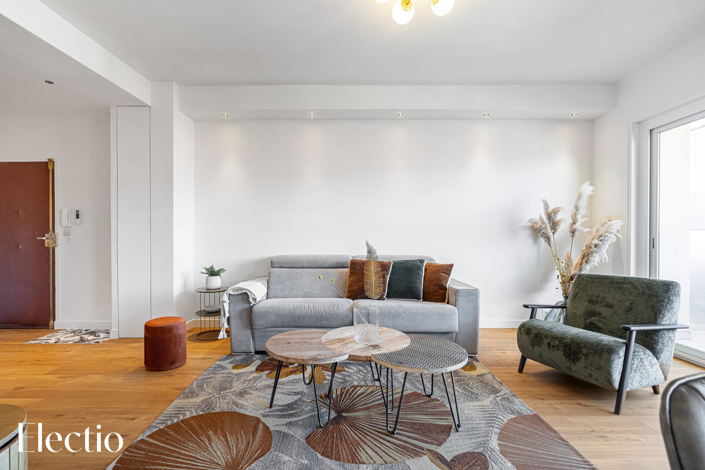 The bright living space is an open and welcoming area, combining a living room and kitchen, designed to make you feel at home upon arrival. The living room is equipped for your relaxation moments, with a cozy sofa bed, an inviting armchair, and a smart TV connected for your movie nights.