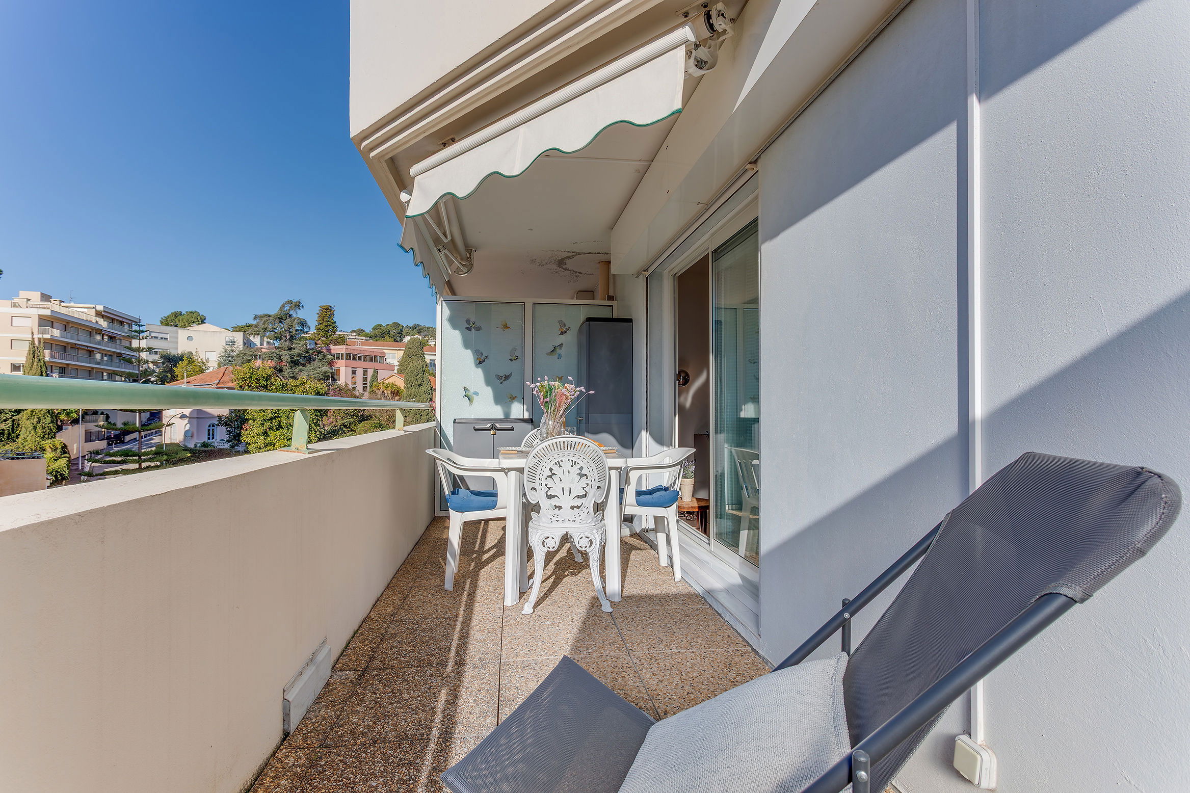 2 room seasonal rental apartment located in Nice in the city center and close to the beach, Promenade des Anglais and shops, Ideally located, it has a bedroom with 1 160cm bed, a bathroom water with shower and WC, a kitchen area equipped with table and chair, and a living room with a double sofa bed and a 10m2 terrace