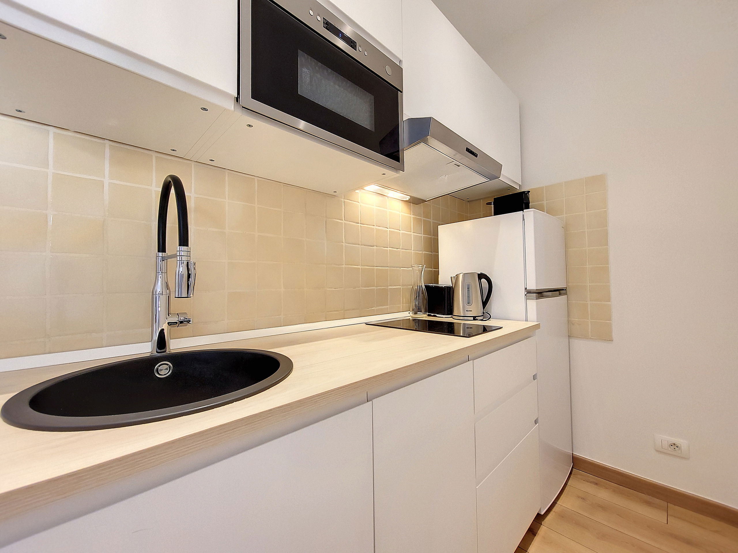 Welcome to SEA AND SUN, a charming, fully air-conditioned one-bedroom apartment in Nice's lively pedestrian zone.