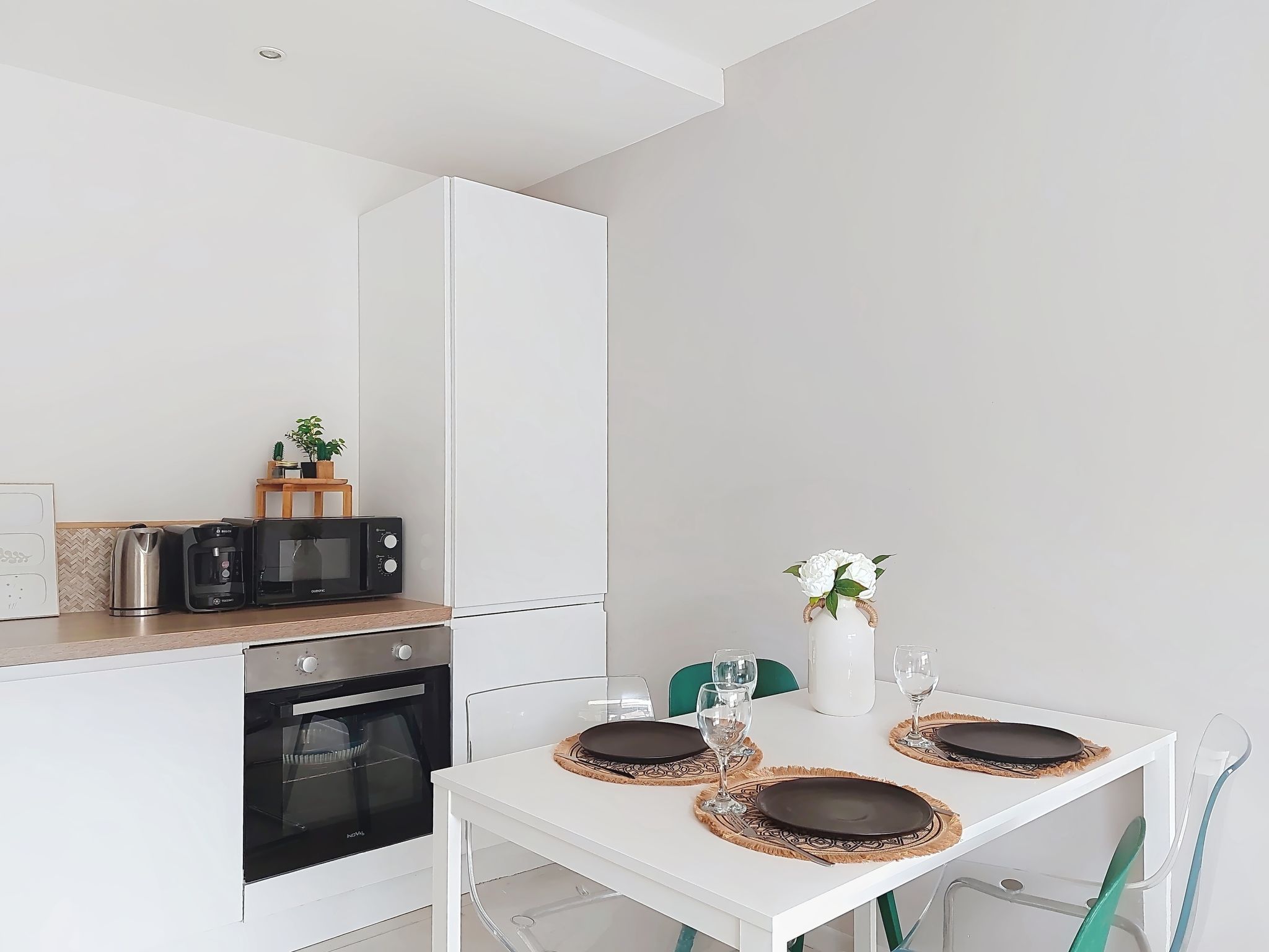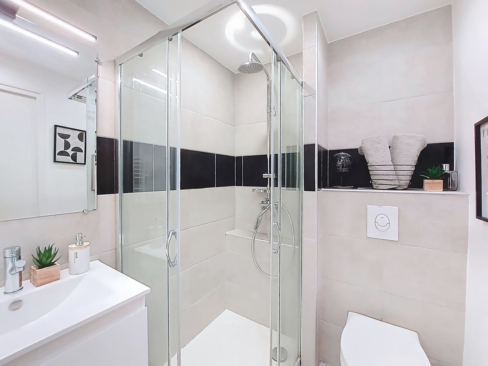 2-room apartment 35 m2 on 5th floor. Comfortable and modern furnishings: living/dining room with 1 double sofabed (110 cm, length 180 cm), flat screen and fan. 1 room with 1 double bed (140 cm, length 190 cm), fan. Kitchen (2 hot plates, oven, toaster, kettle, microwave, electric coffee machine, Capsules for coffee machine (Nespresso) extra). Shower/WC. Facilities: washing machine, iron. Internet (WiFi, free). Offer by a private individual according to Art. 155, IV of CGI. 06088036611MX