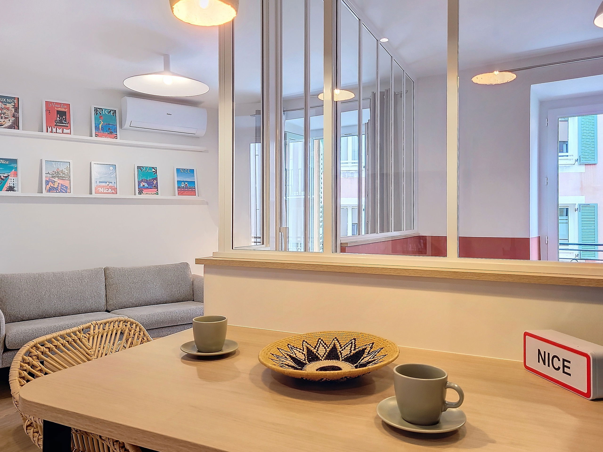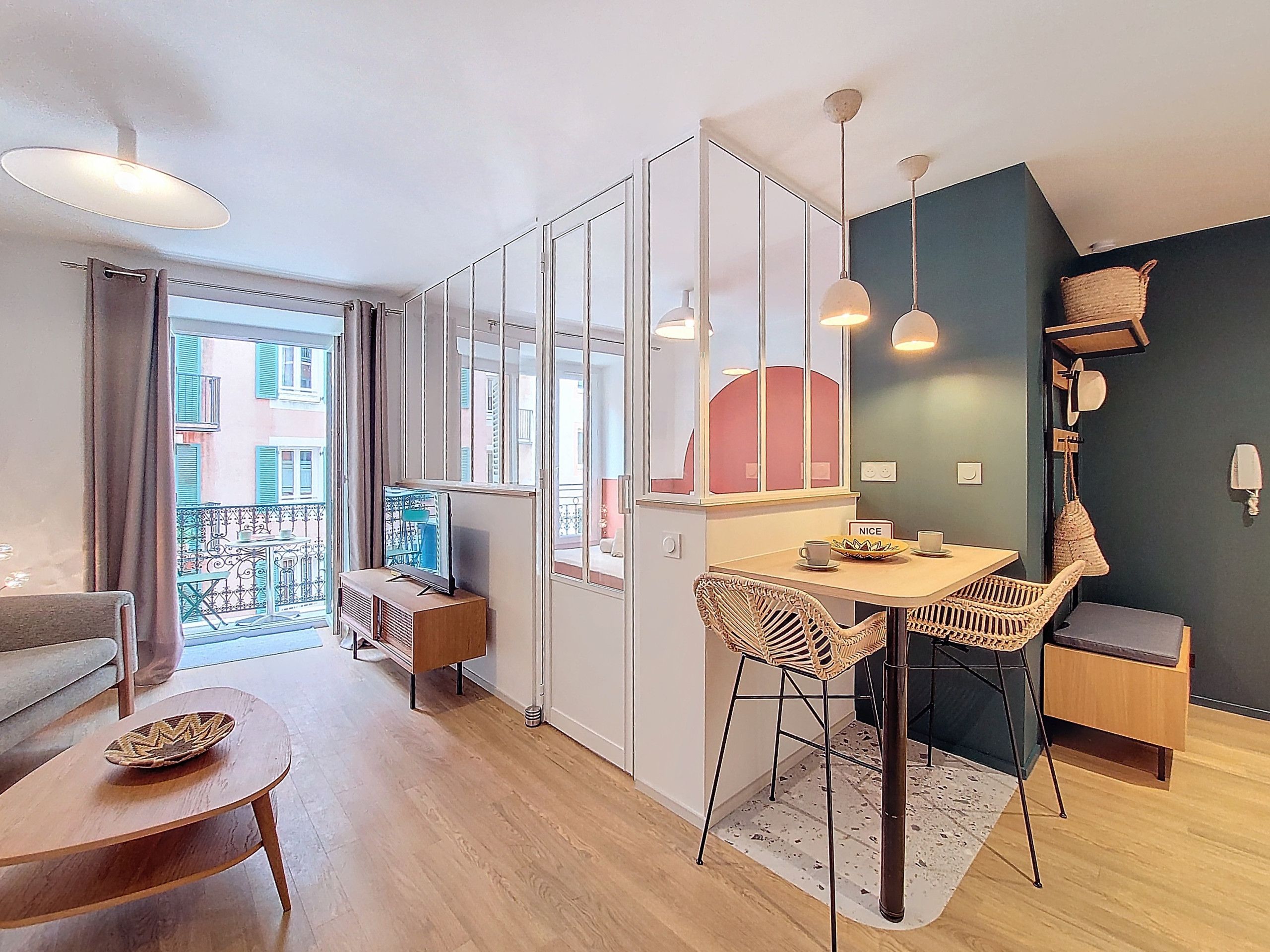 Welcome to PLACE DU PIN a charming apartment with balcony , ideally located near Place du Pin. Nestled in a lively, bustling neighborhood, it is surrounded by Provencal-colored buildings typical of the Nice region.