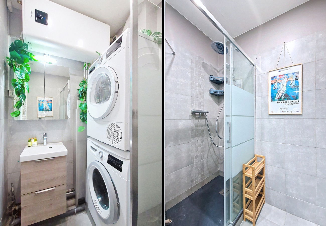 - Modern bathroom with washing machine & dryer