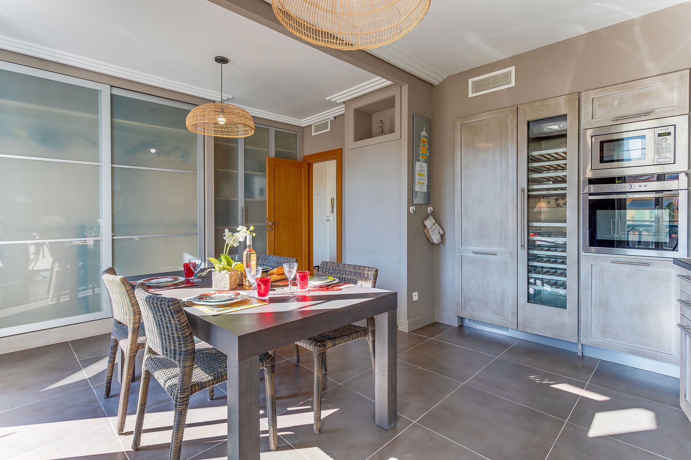 The apartment features a modern layout with a fully equipped open-plan kitchen, including all essential appliances: refrigerator, dishwasher, oven, microwave, coffee machine, and much more. The main bedroom offers a queen-size bed for optimal rest.