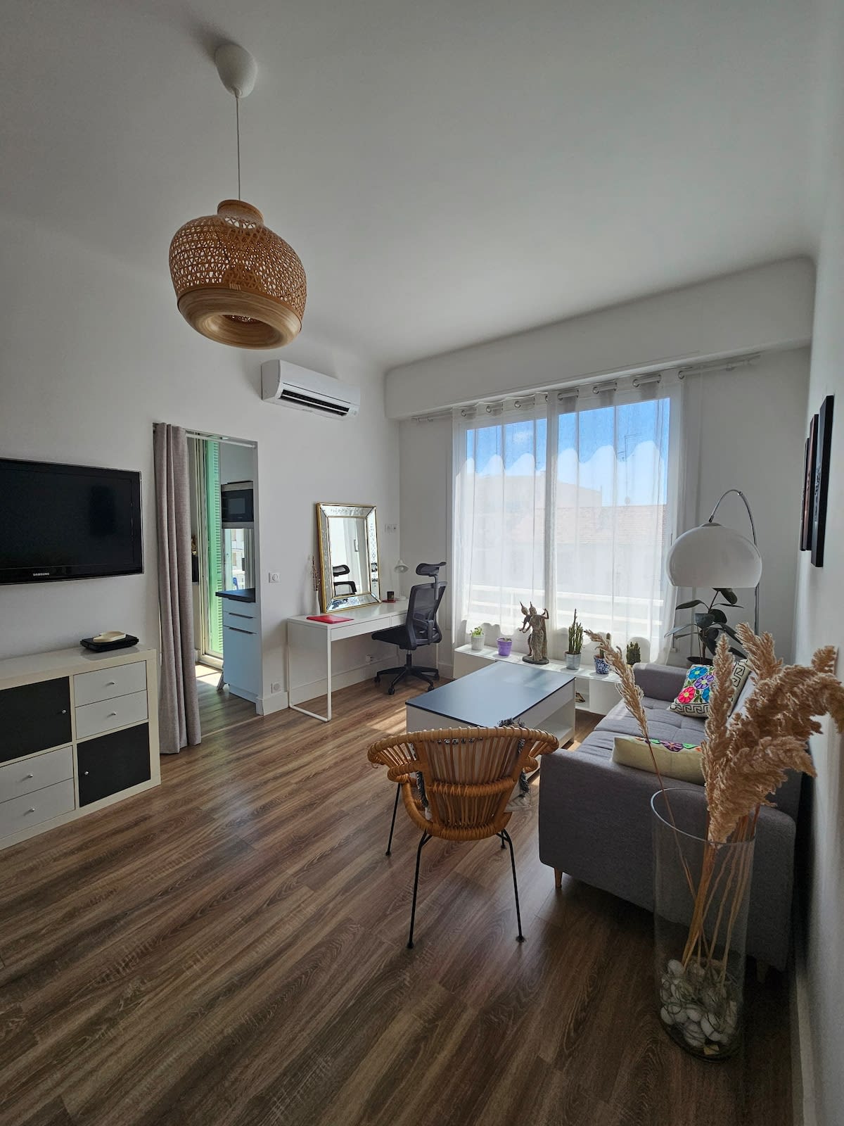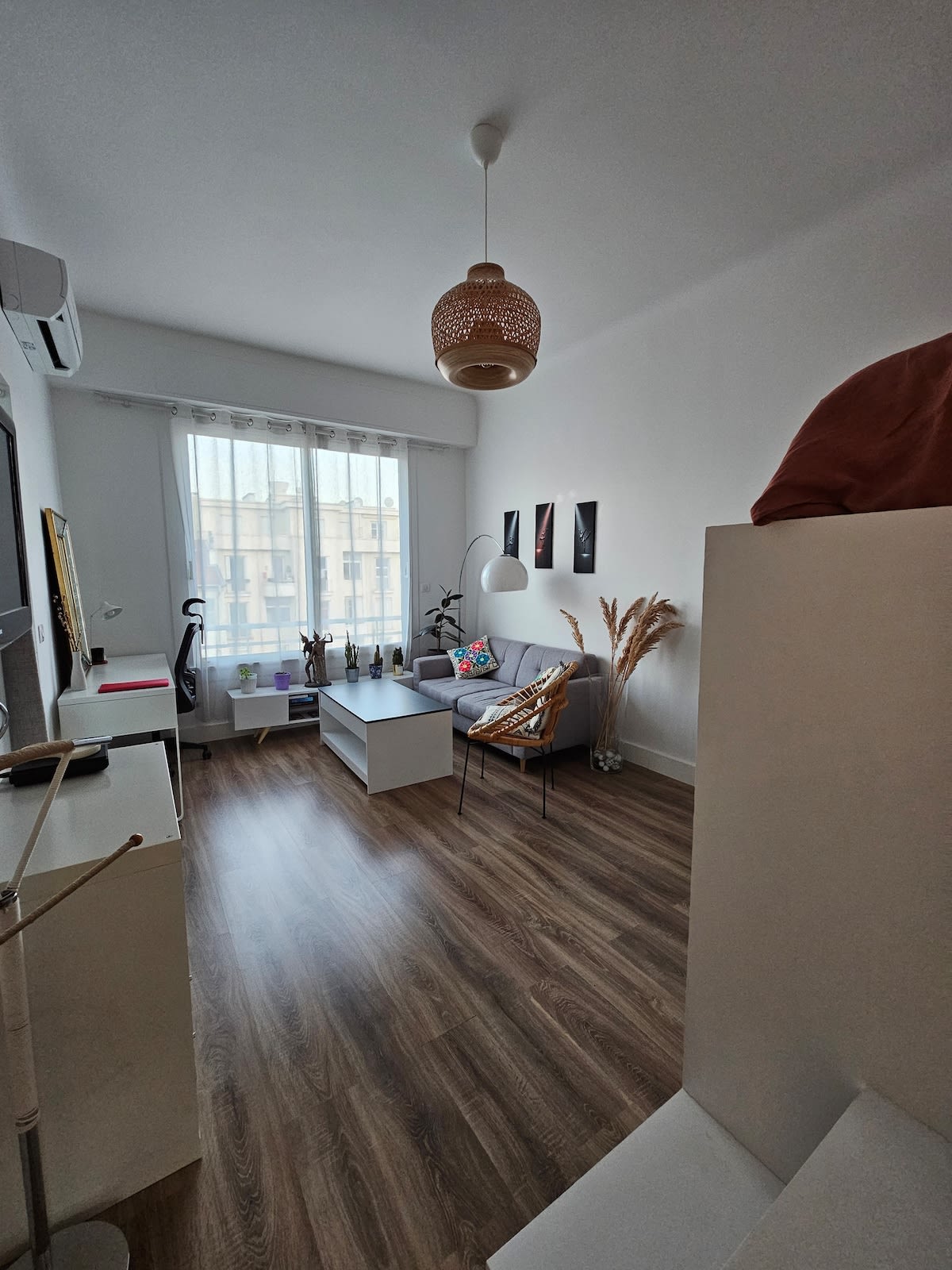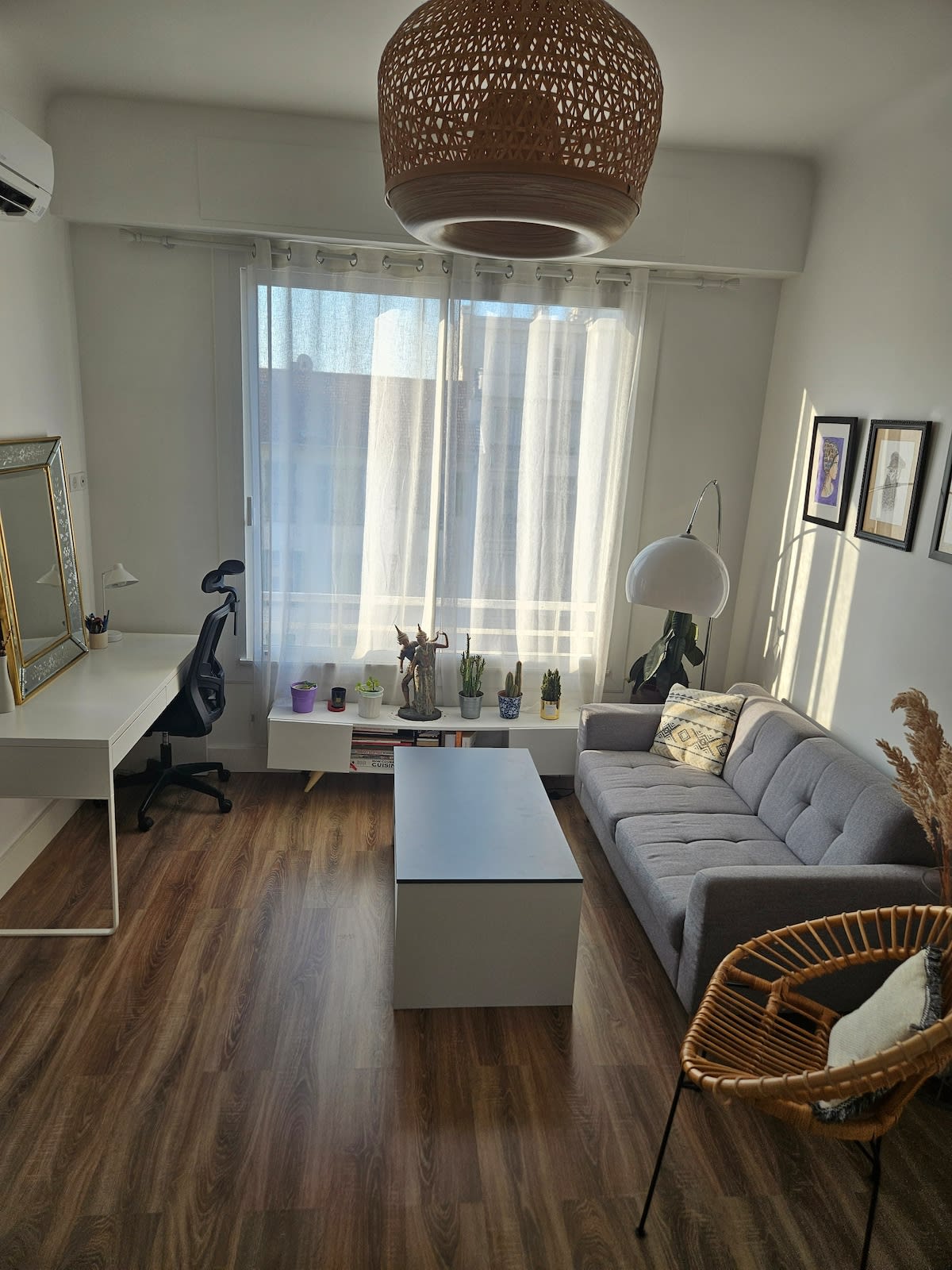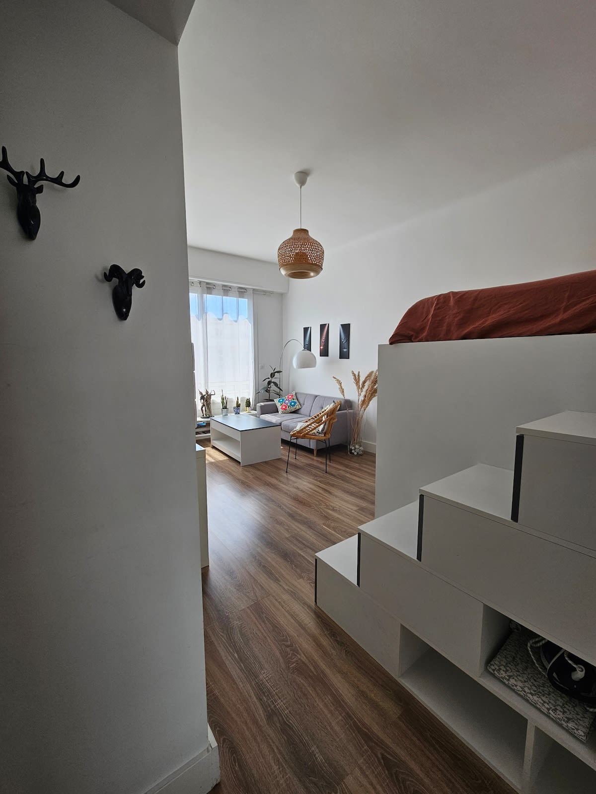 Très lumineux et confortable, cet appartement dispose d'une pièce principale composée d'un séjour raffiné et lumineux grâce à son exposition plein sud et sa hauteur sous plafond. A l'écart, l'espace nuit, situé dans la même pièce mais sur-élevé. Vous profiterez d'un lit 140x200 surélevé avec accès via des marches de 40 cm de hauteur.