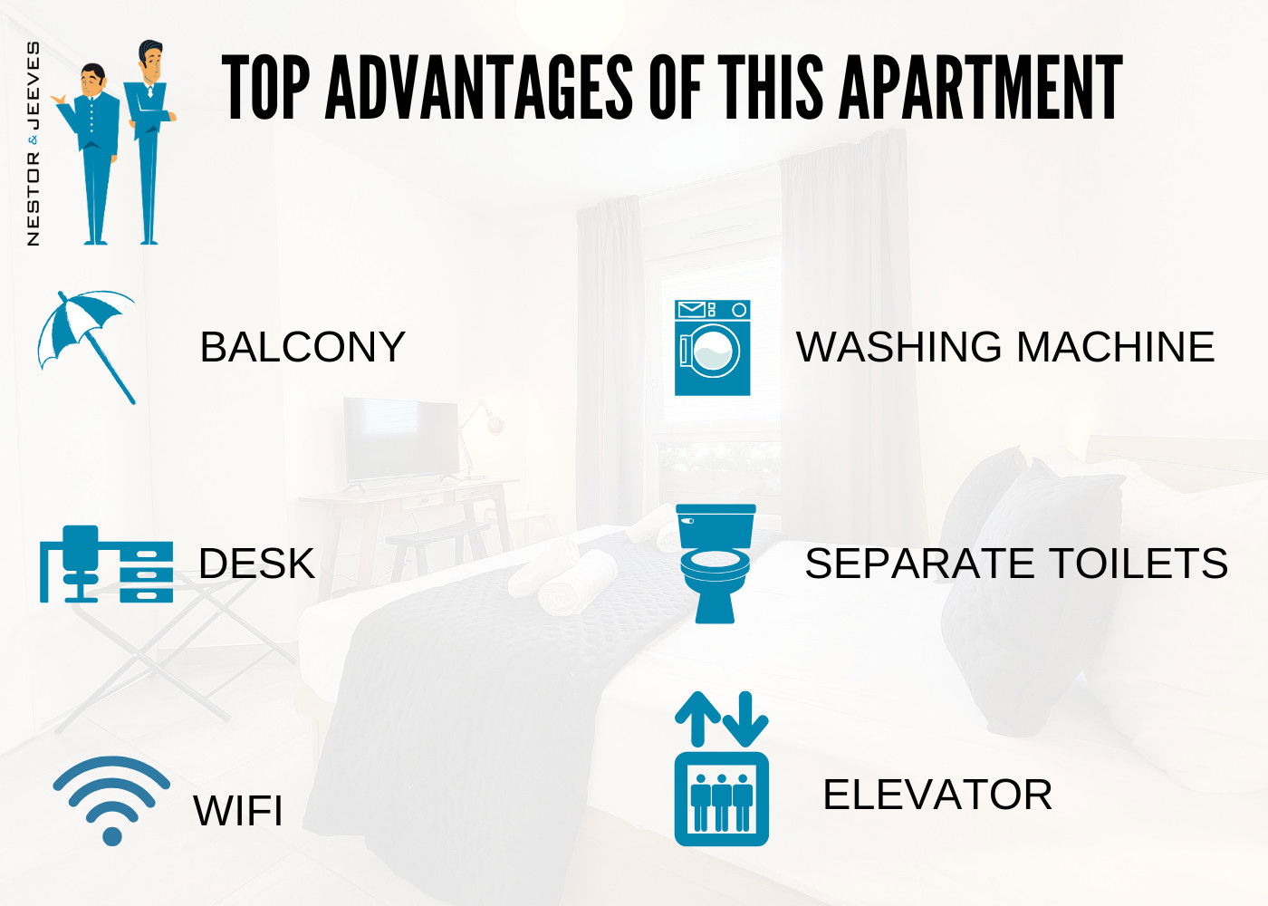 - WELCOME KIT provided to give you time to settle in and shop: soap, toilet paper, bin bag, sponge, etc.