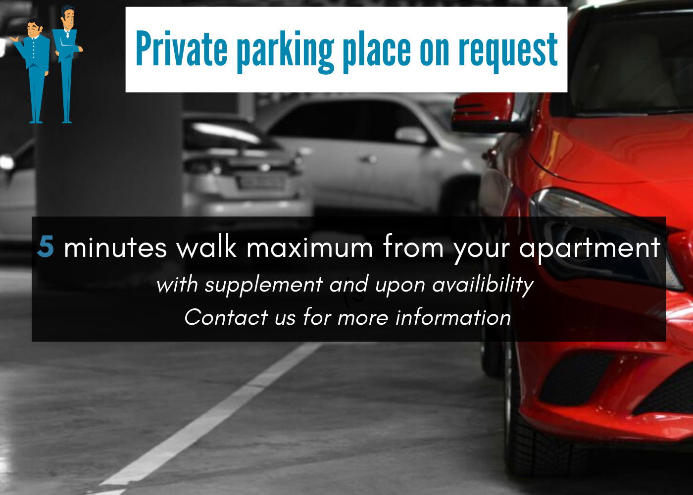 - PRIVATE PARKING : within 5 minutes walking distance from your apartment