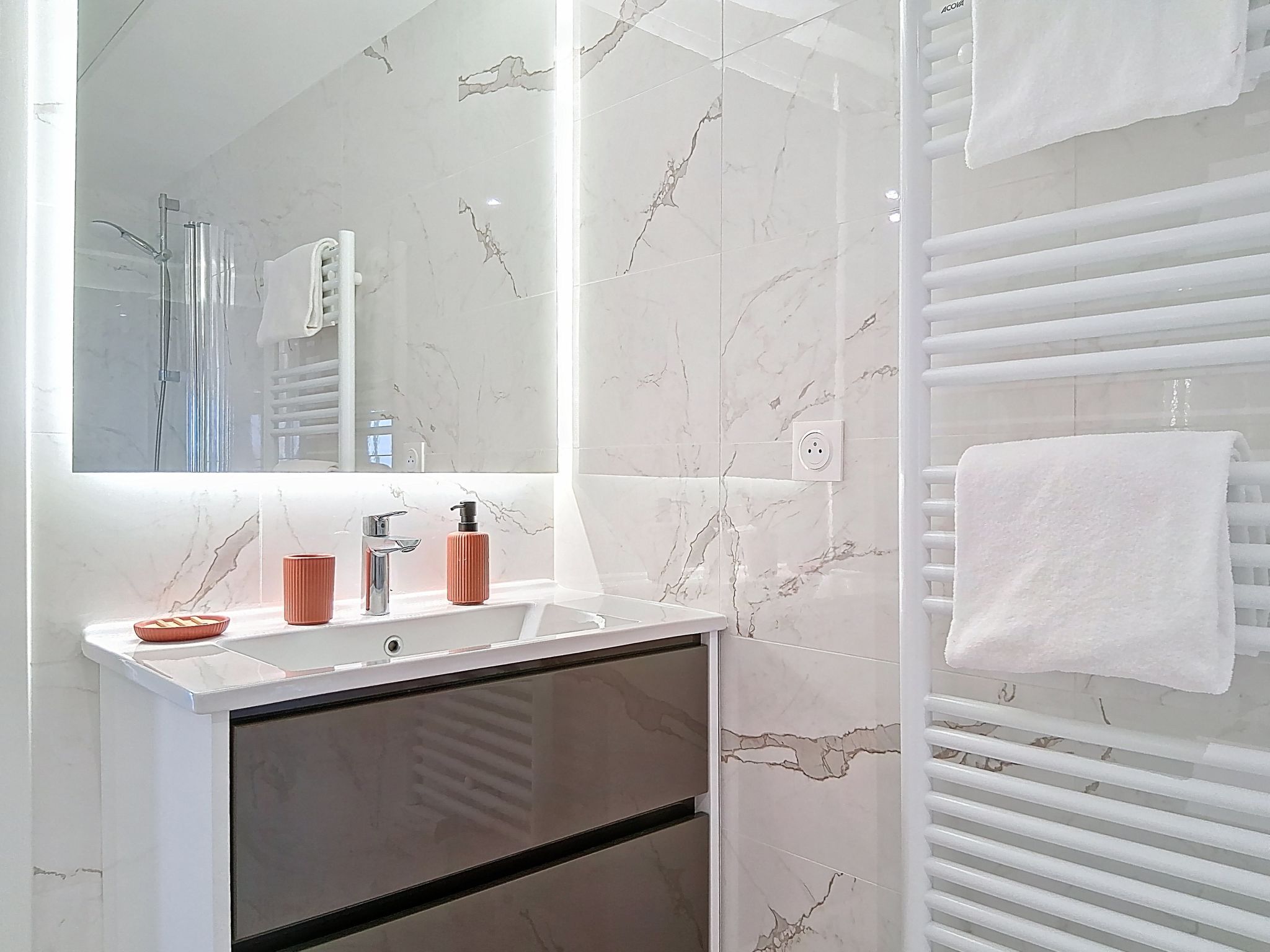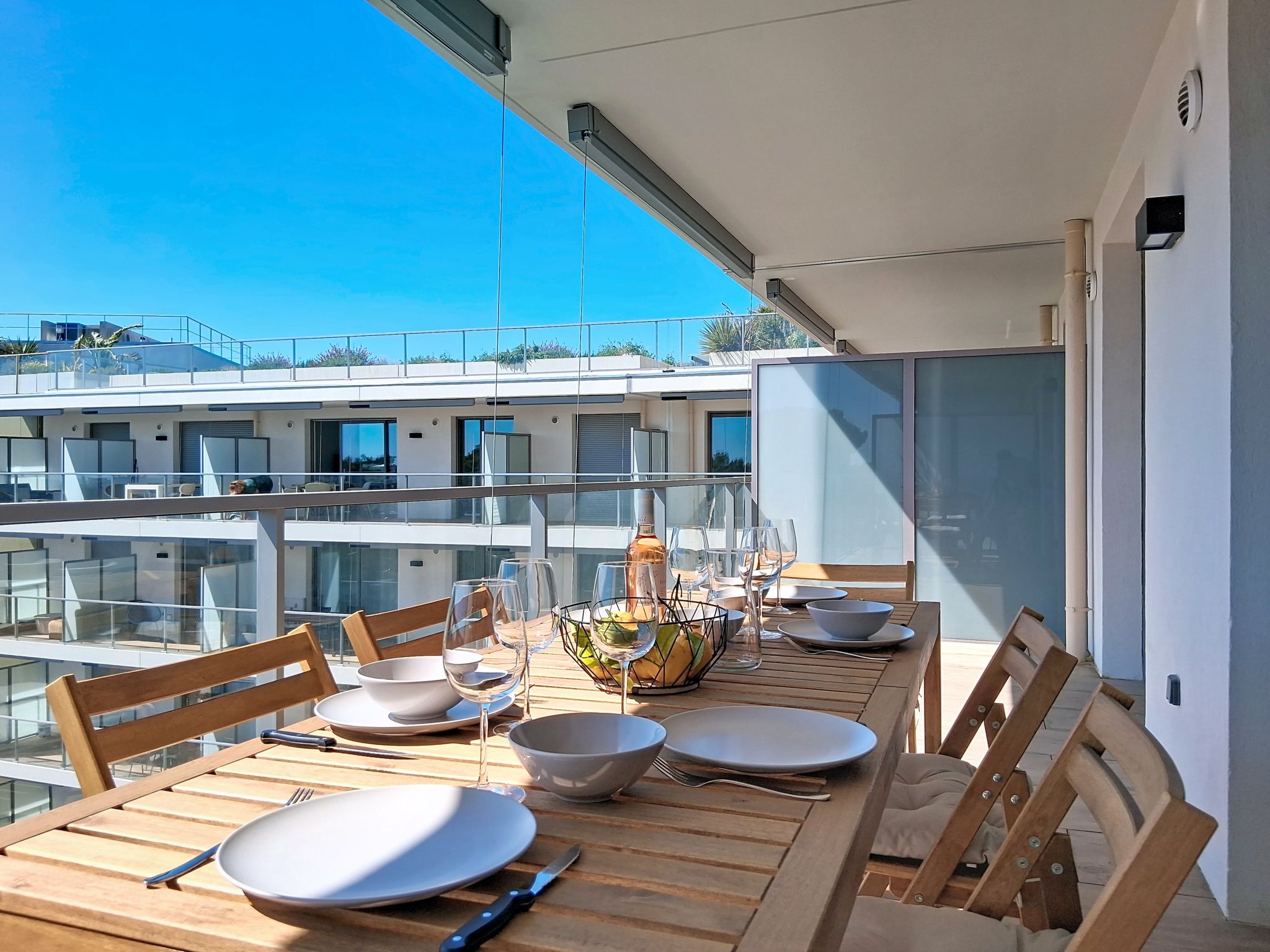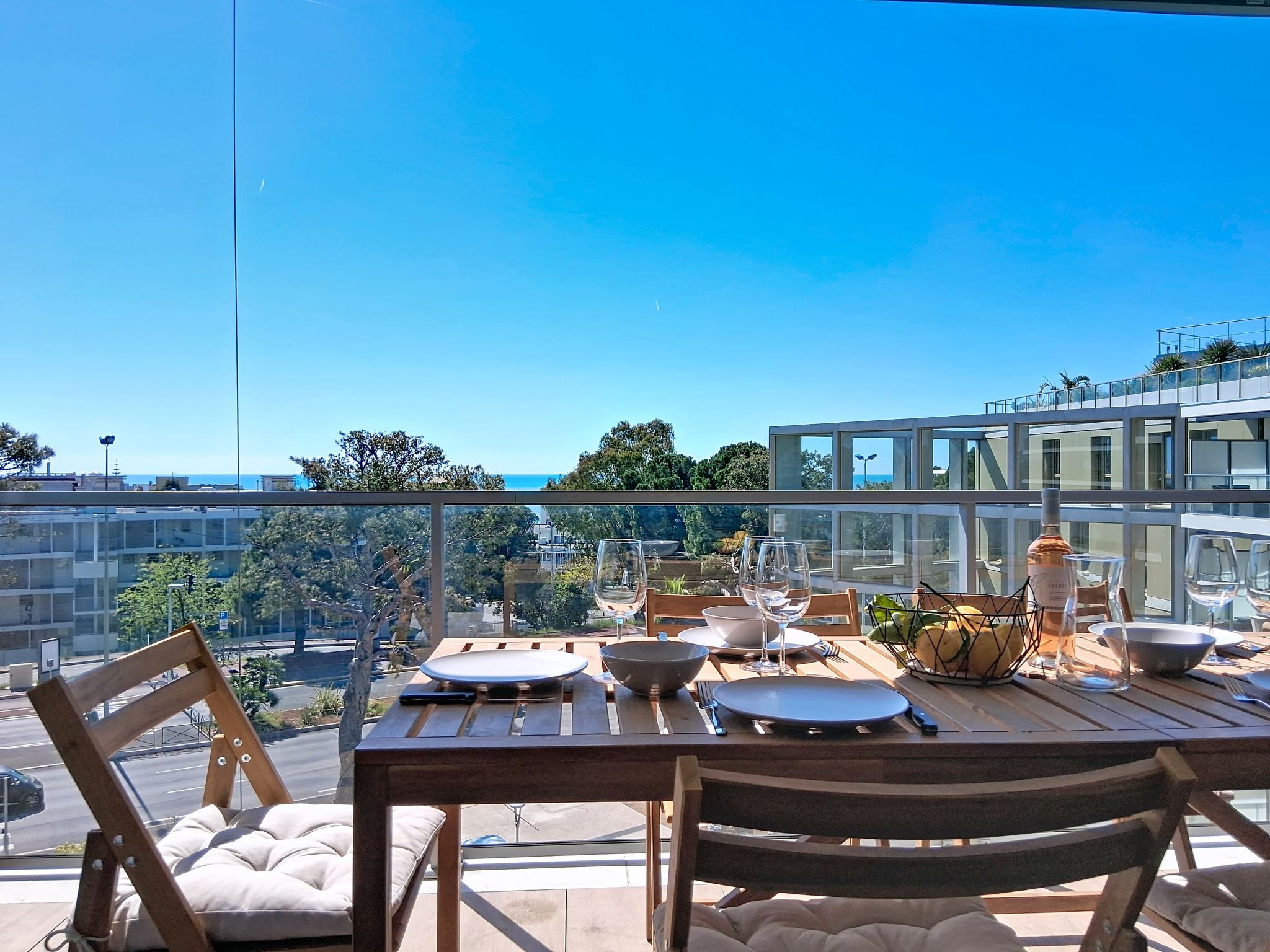 New luxury residence with rooftop swimming pool and panoramic sea view beautiful residence "Seaside View", 7 storeys, built in 2025. In a central, busy position in the residential district, 200 m from the sea, 200 m from the beach, south facing position. For shared use: swimming pool angular (seasonal availability: 01.Jun.). Shower/WC in the pool area. In the house: lift. Shopping centre 750 m, restaurant 800 m, pedestrian zone 950 m, bus stop "la passerelle" 500 m, railway station "Gare st laurent du var" 500 m, sandy beach "Plage des flots Bleu" 800 m. Sports harbour 400 m. Nearby attractions: sports nautiques 400 m, centre commercial cap 3000 750 m.