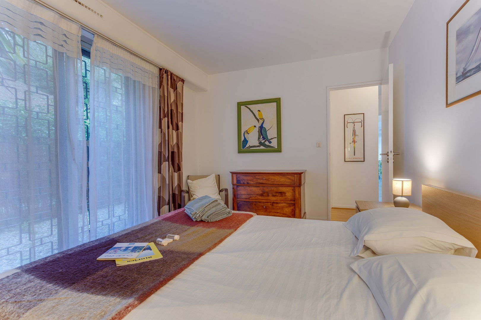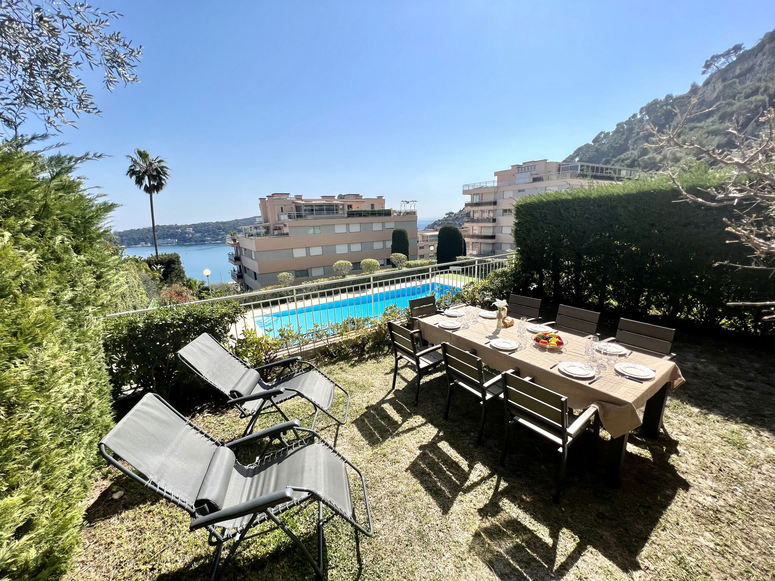 Le JARDIN FIGUIERS is a vacation rental apartment located in Villefranche S / Mer with an area of 85 square meters that can accommodate 5 people and located on the ground floor of a beautiful residence with swimming pool.