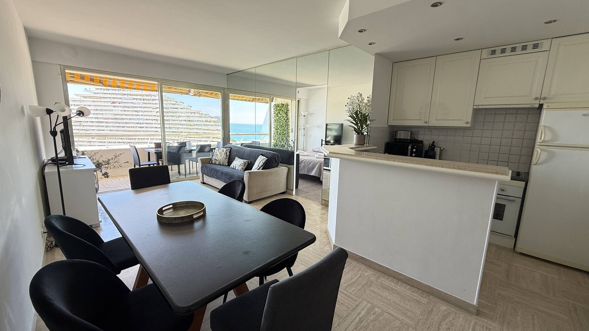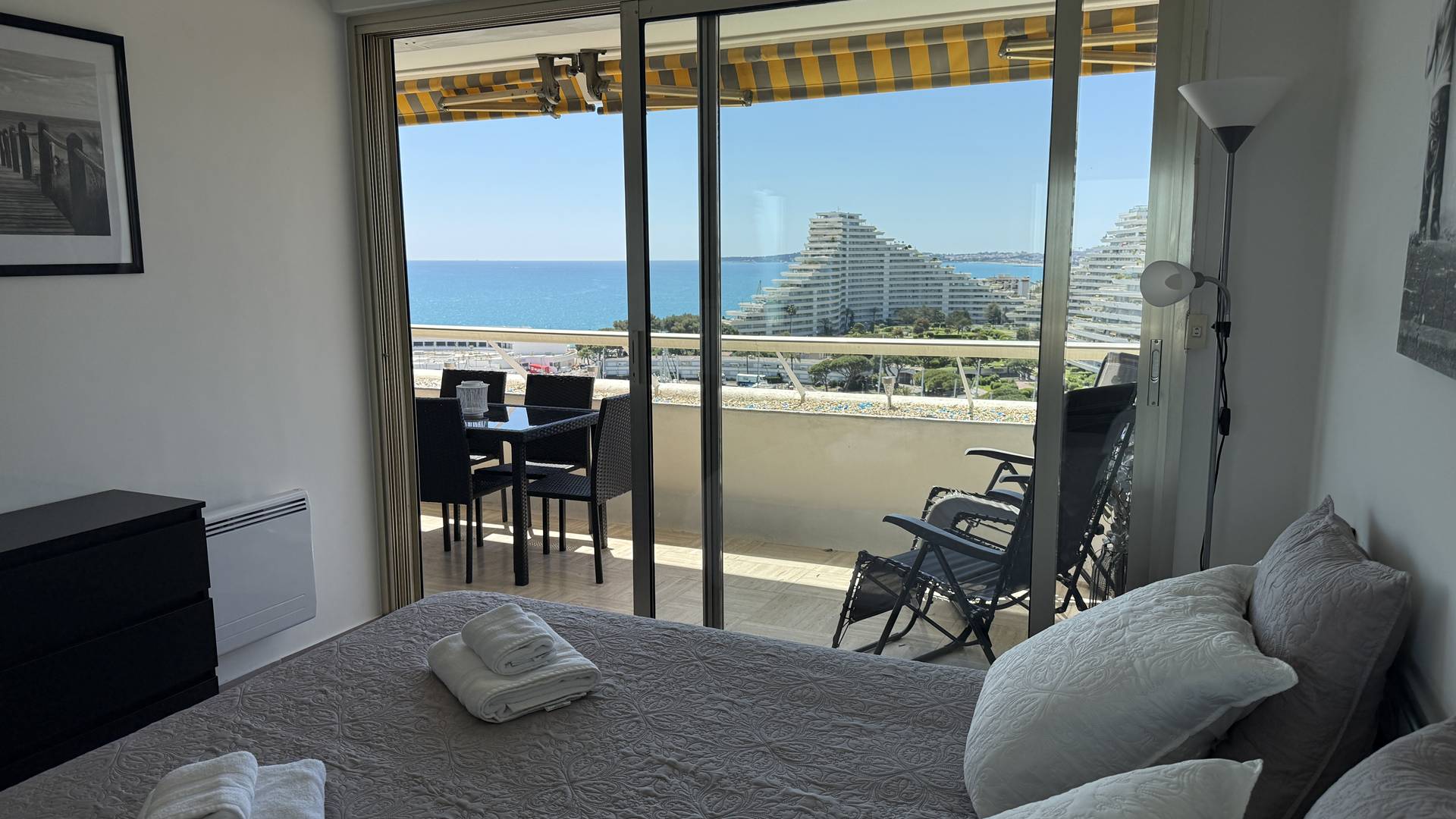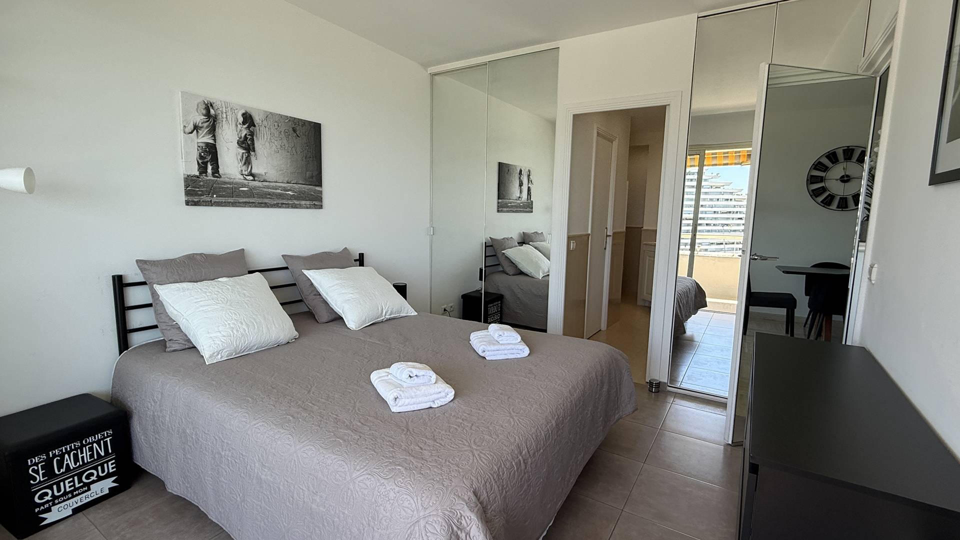 3P 60 m² flat with large 12 m² terrace, on the 10th floor with lift, tastefully decorated and equipped to a high standard, ideally located in Villeneuve-Loubet Plage at Marina Baie des Anges residence Le Ducal.
