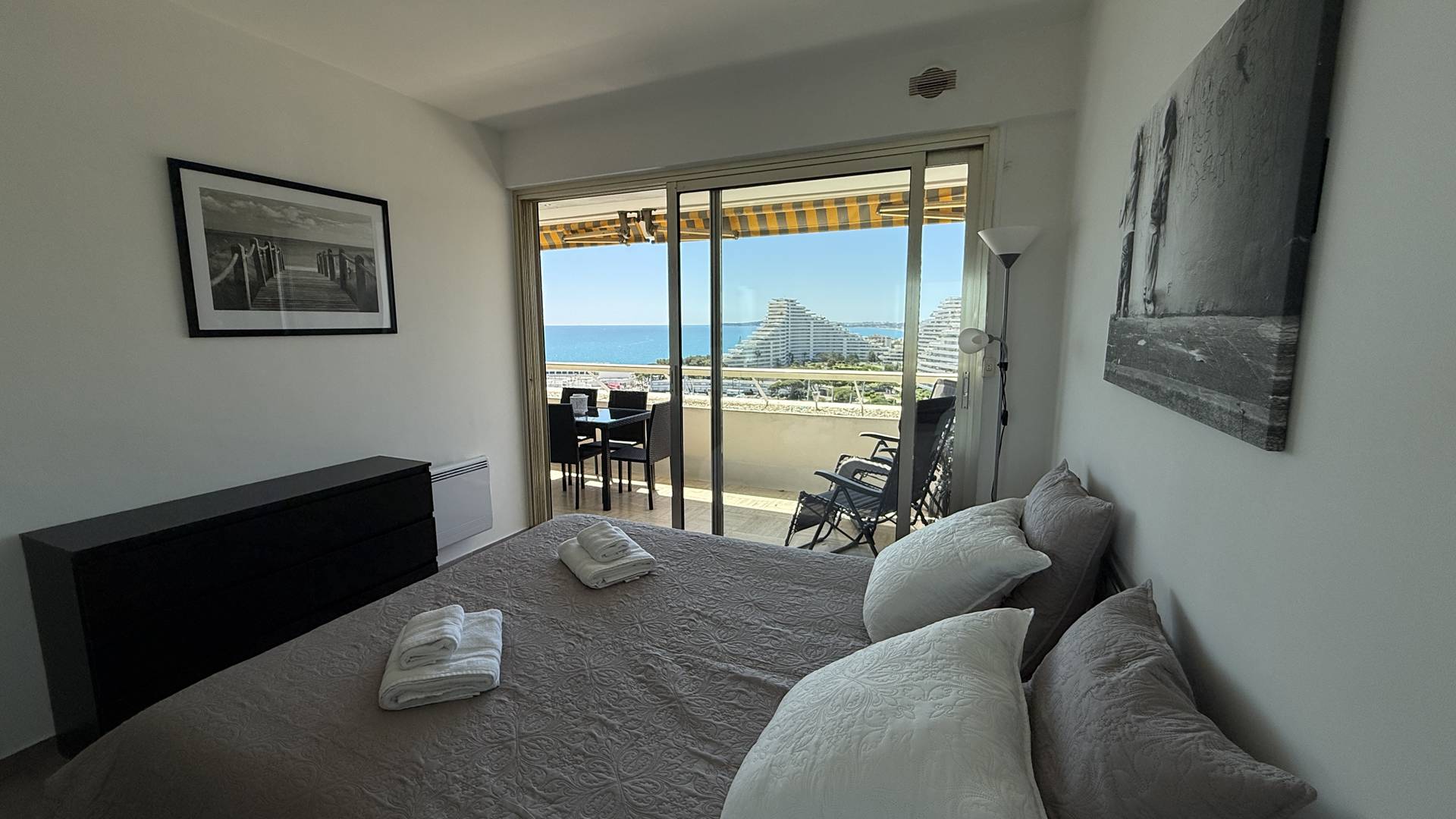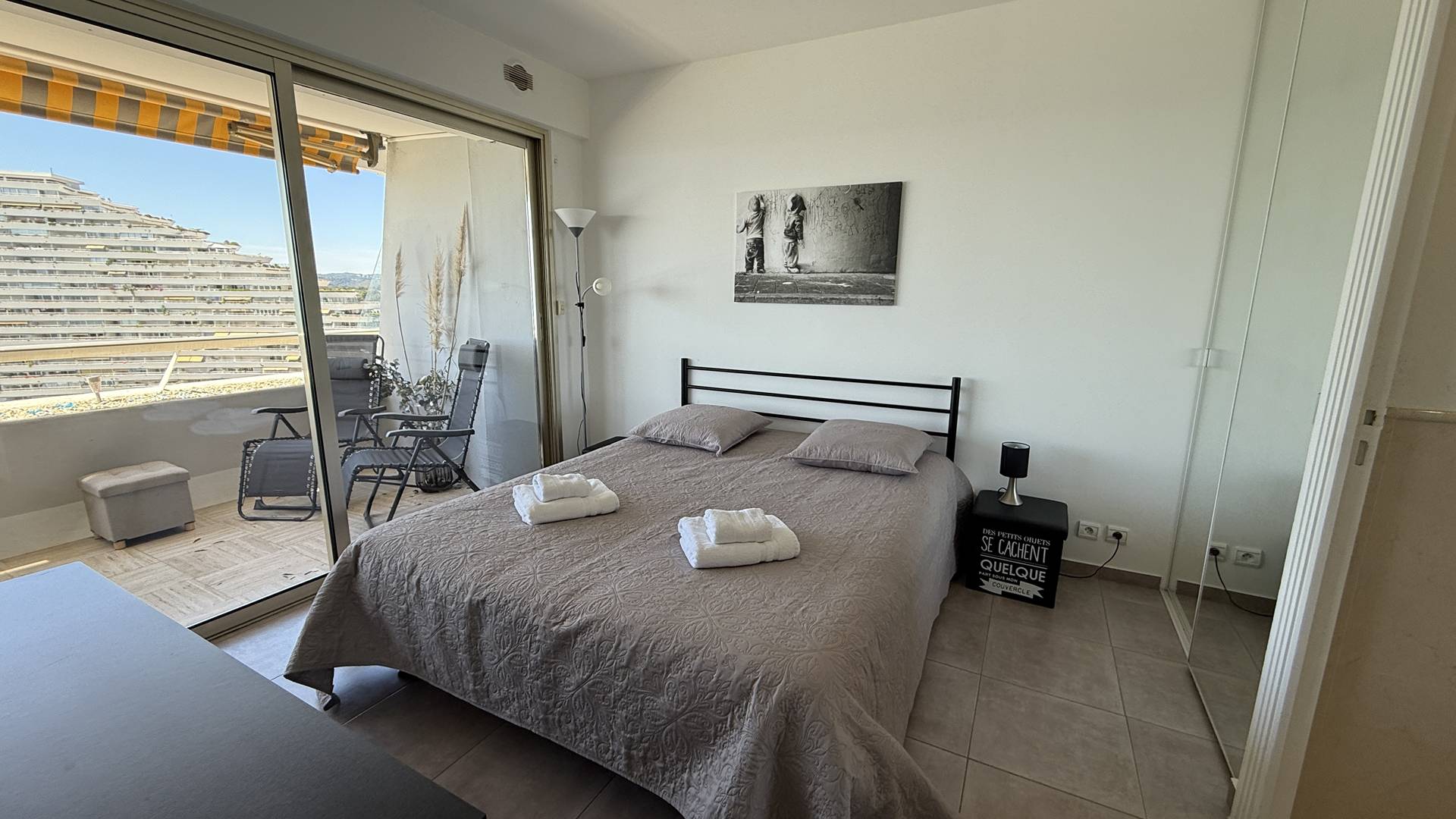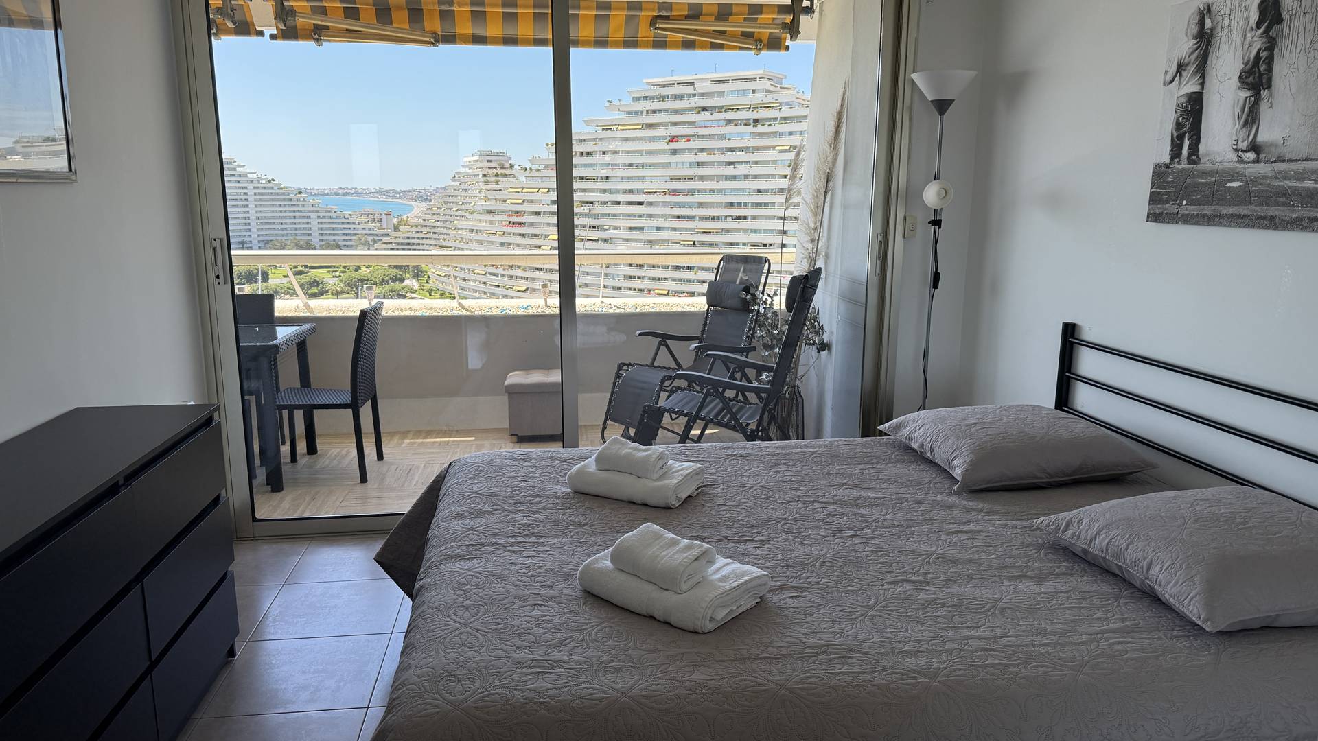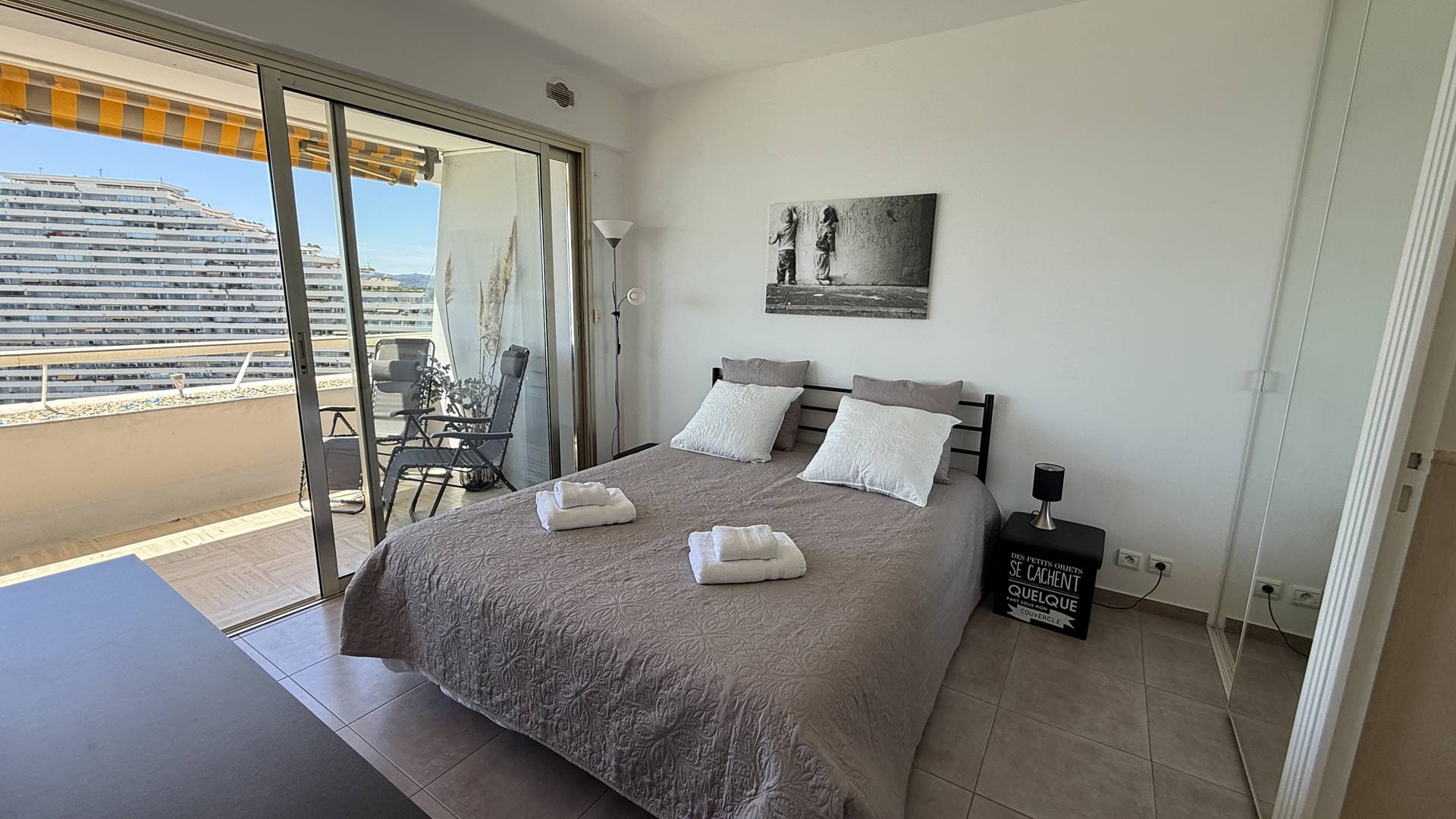 3P 60 m² flat with large 12 m² terrace, on the 10th floor with lift, tastefully decorated and equipped to a high standard, ideally located in Villeneuve-Loubet Plage at Marina Baie des Anges residence Le Ducal.