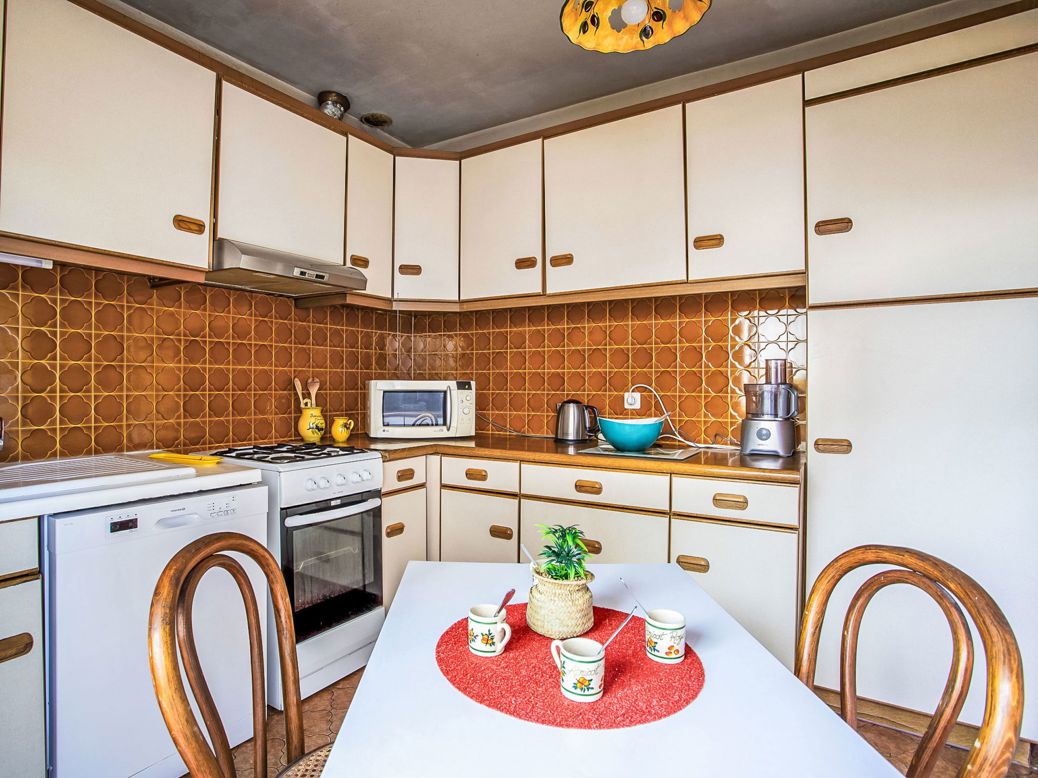 4-room semi-detached house 100 m2 on 2 levels, south-west facing position. Simple and rustic furnishings: living/dining room. Exit to the garden, to the terrace. 1 room with 1 french bed (1 x 140 cm, length 190 cm). 1 room with 1 french bed (1 x 140 cm, length 190 cm). Kitchen (4 hot plates, oven, dishwasher, toaster, kettle, microwave, electric coffee machine). Shower, sep. WC. Heating. Upper floor: 1 room with 1 french bed (1 x 140 cm, length 190 cm). Small balcony, south facing position, terrace 10 m2, west facing position. Balcony furniture, barbecue. Facilities: washing machine, iron, hair dryer. Internet (WiFi, extra). Parking (2 cars). Please note: non-smoking house. Smoke alarm. Access to the upper floor via stairs. Offer by a private individual according to Art. 155, IV of CGI. 06027039858AK