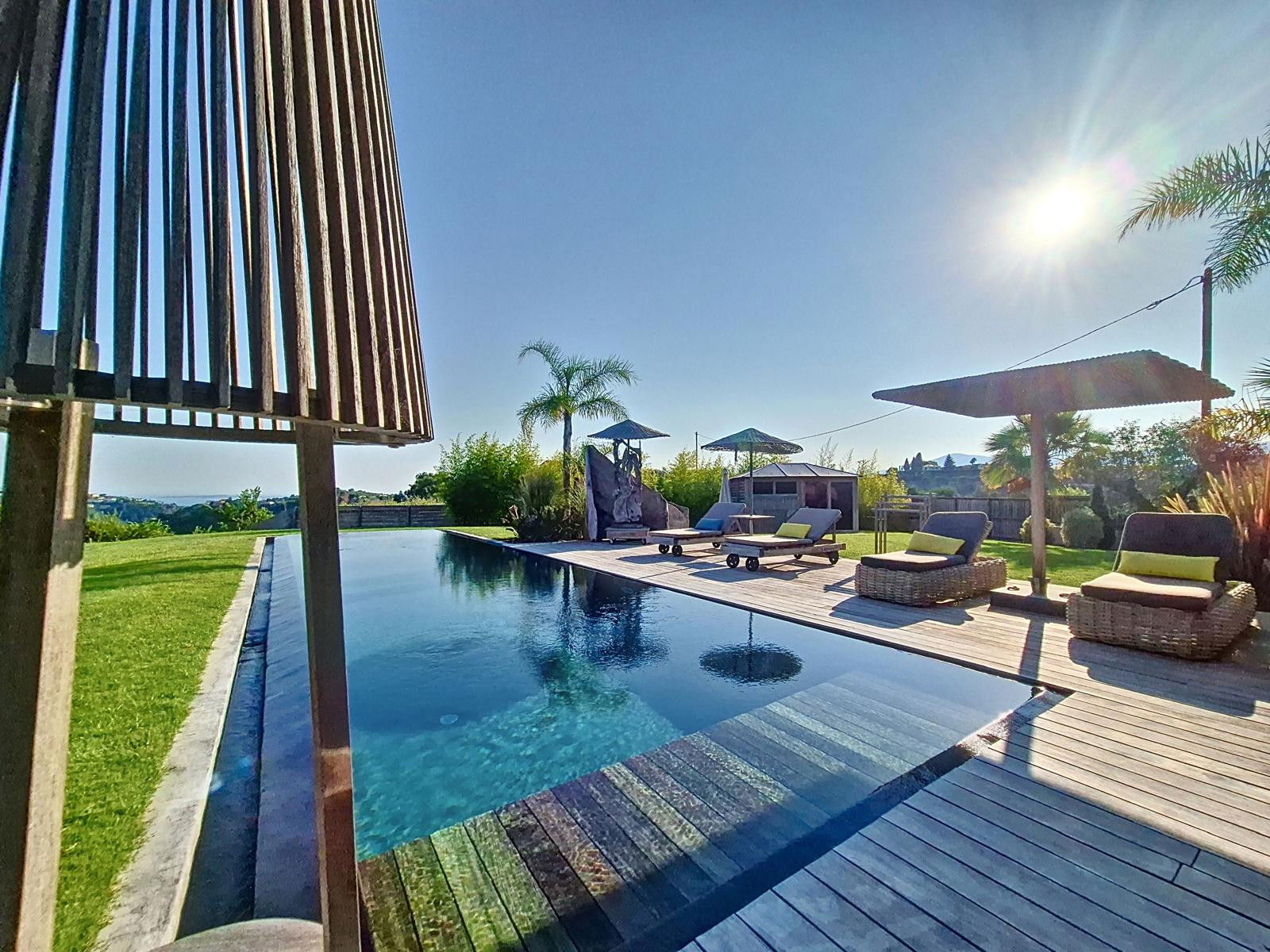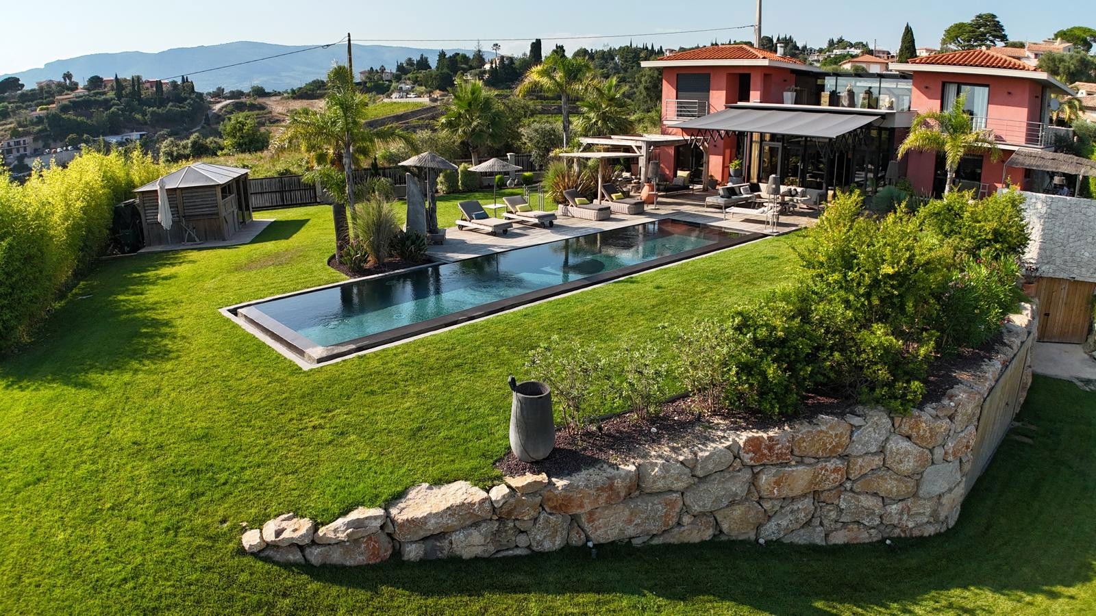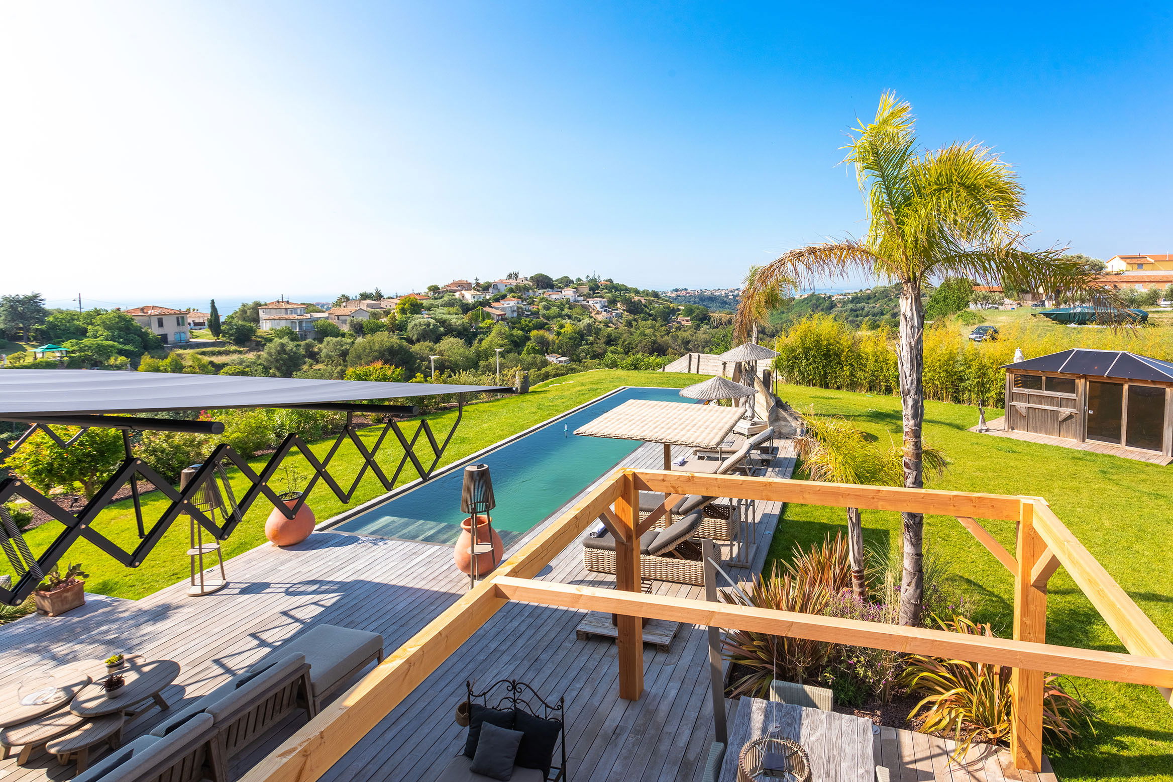 luxury property of 300 m2 with heated swimming pool on the heights of Nice overlooking the sea and the famous vineyards of Bellet and Crémat.