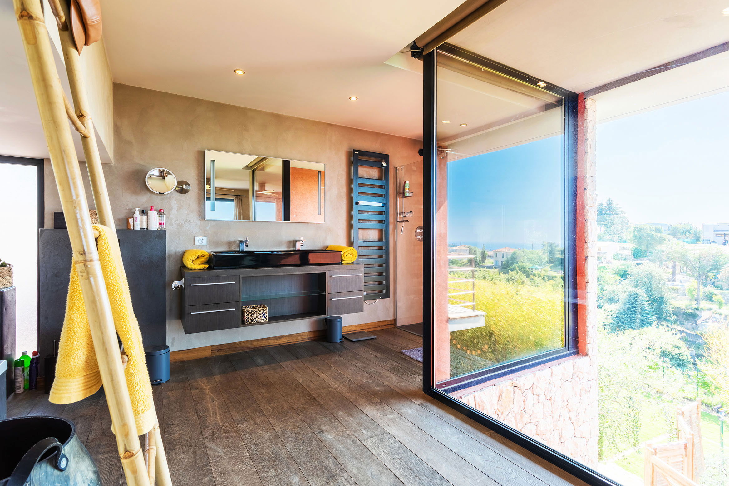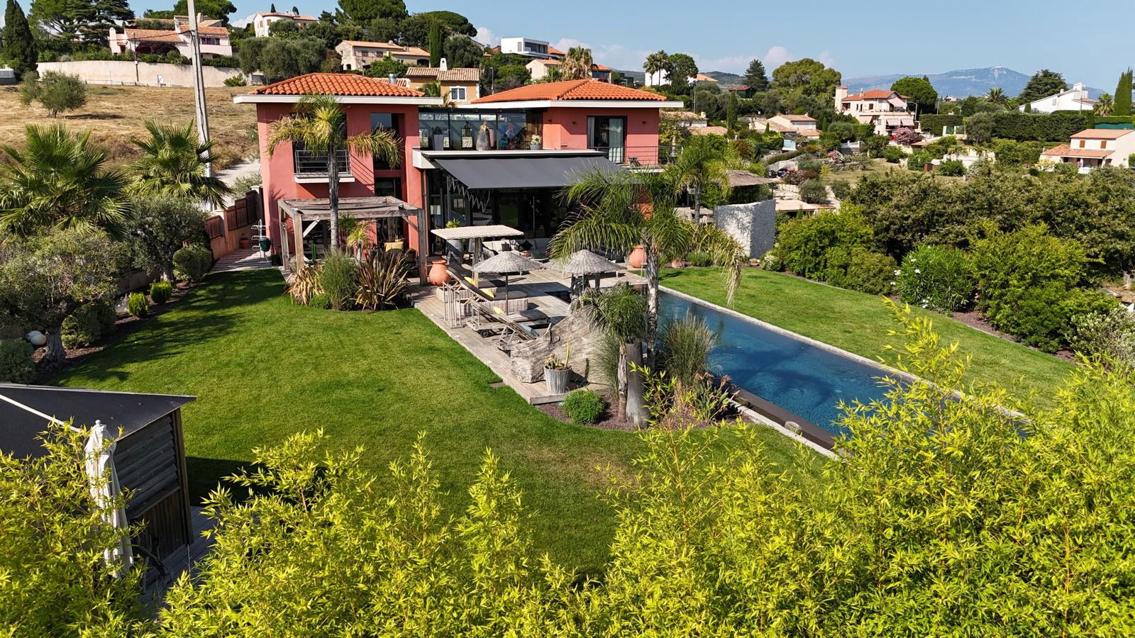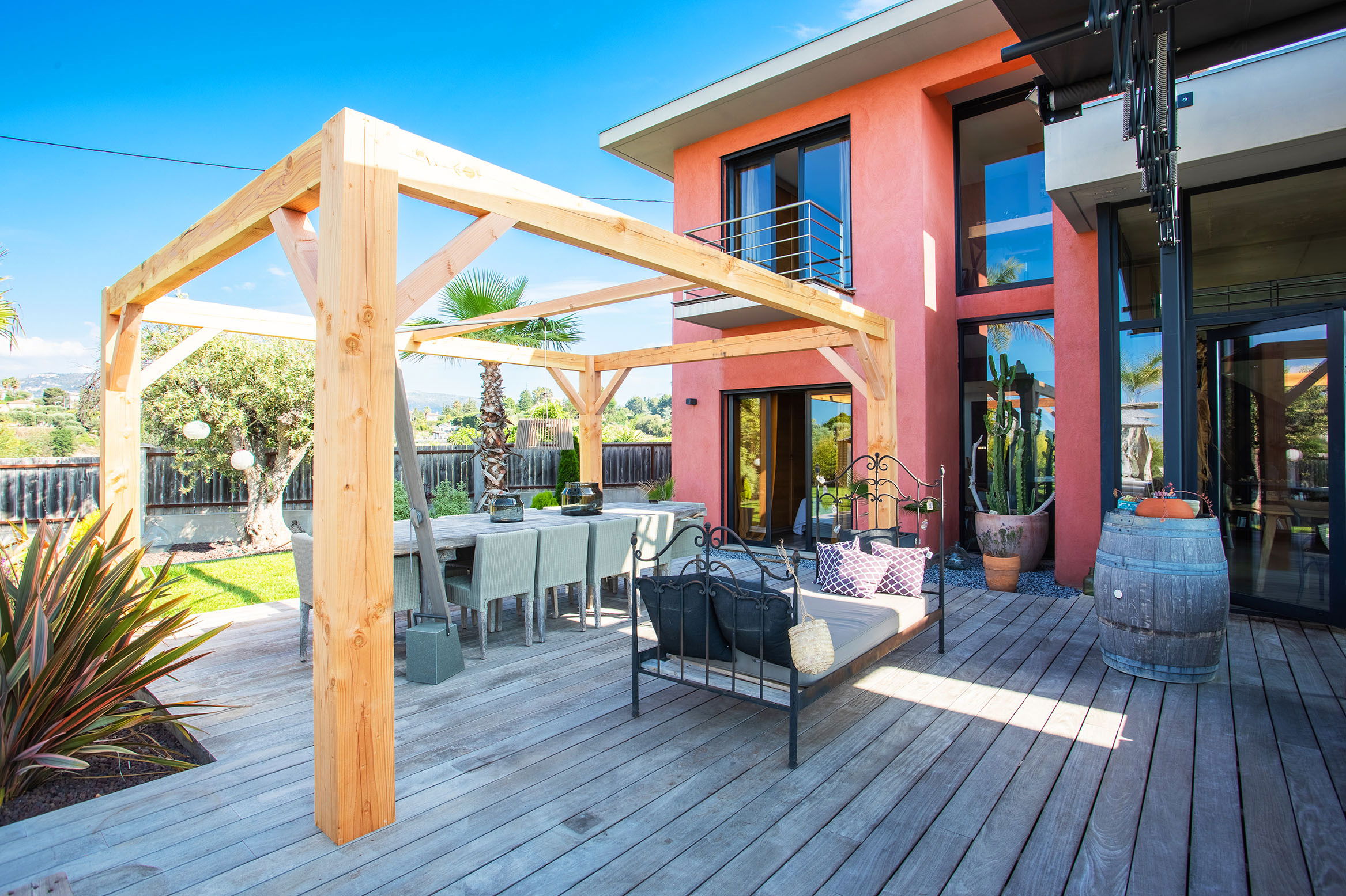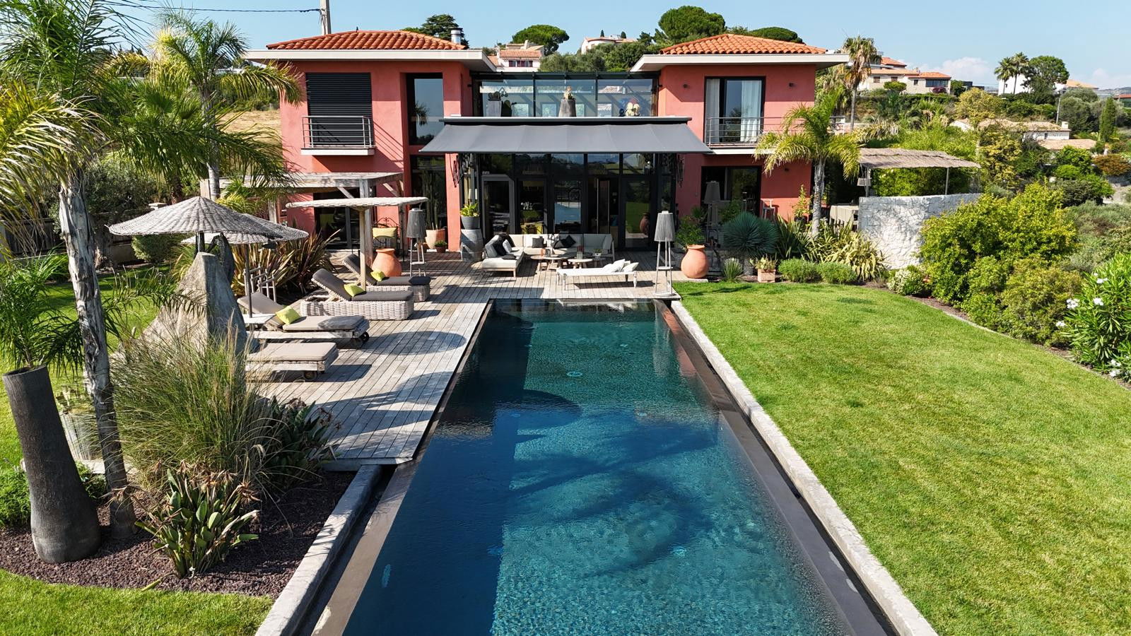 luxury property of 300 m2 with heated swimming pool on the heights of Nice overlooking the sea and the famous vineyards of Bellet and Crémat.