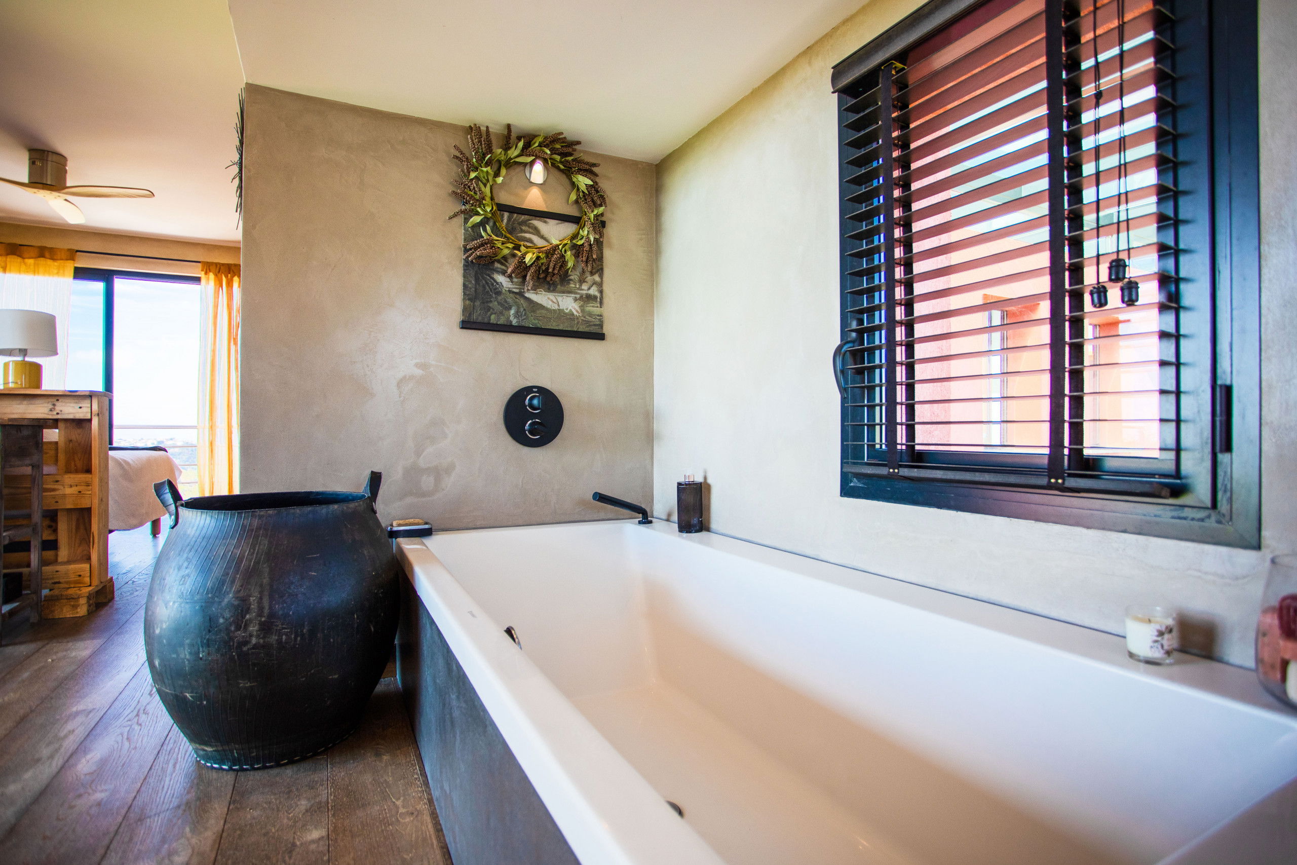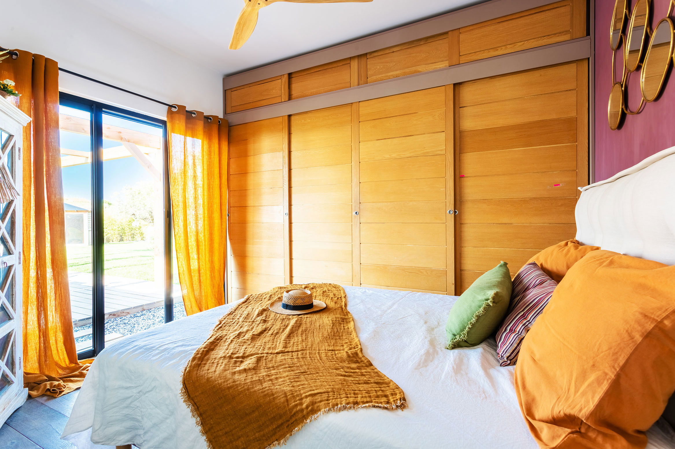 - A bedroom with pool and garden view in a ground floor suite with 160 bed, dressing room, desk, bathroom/walk-in shower, separate toilet,
