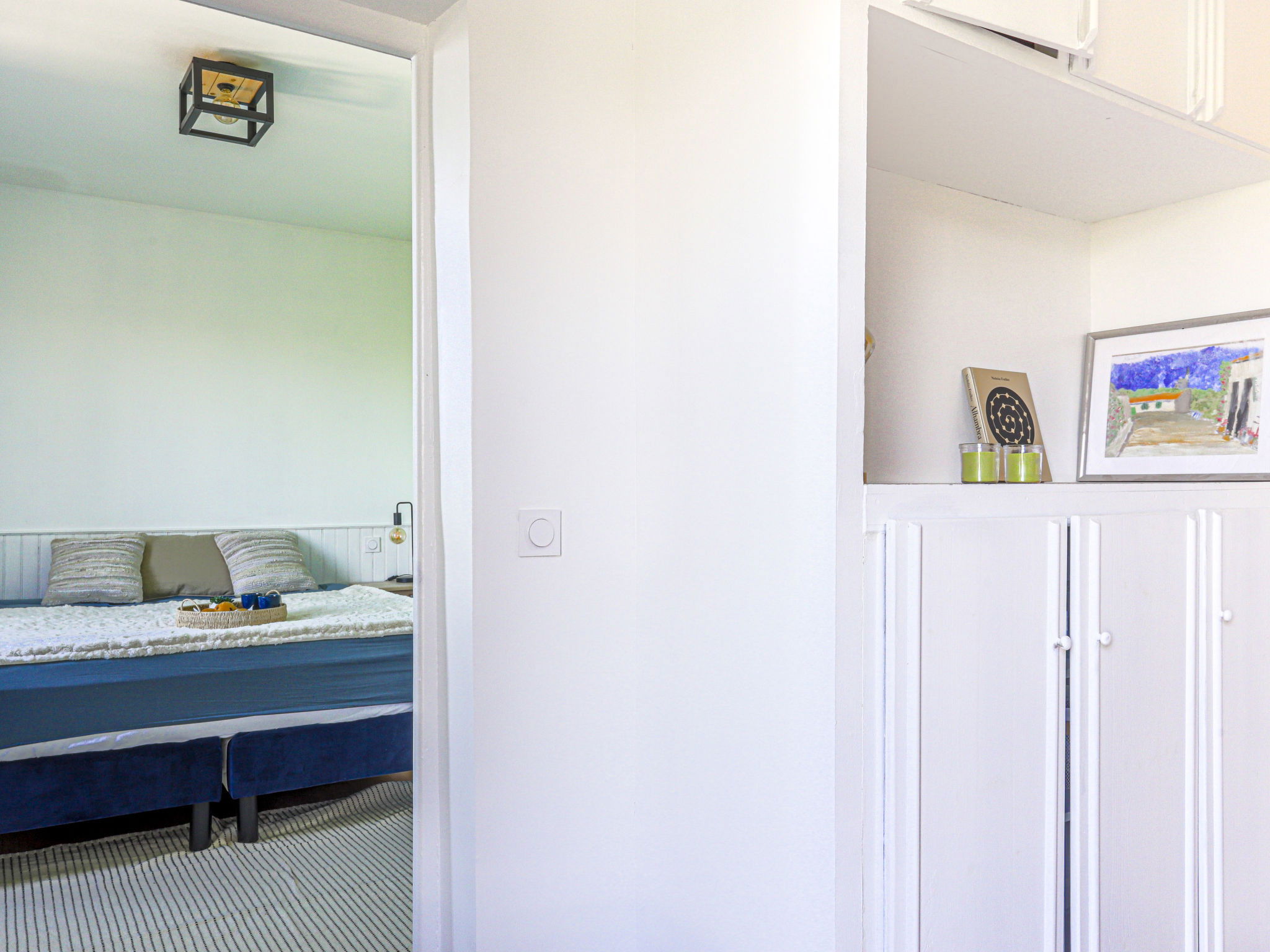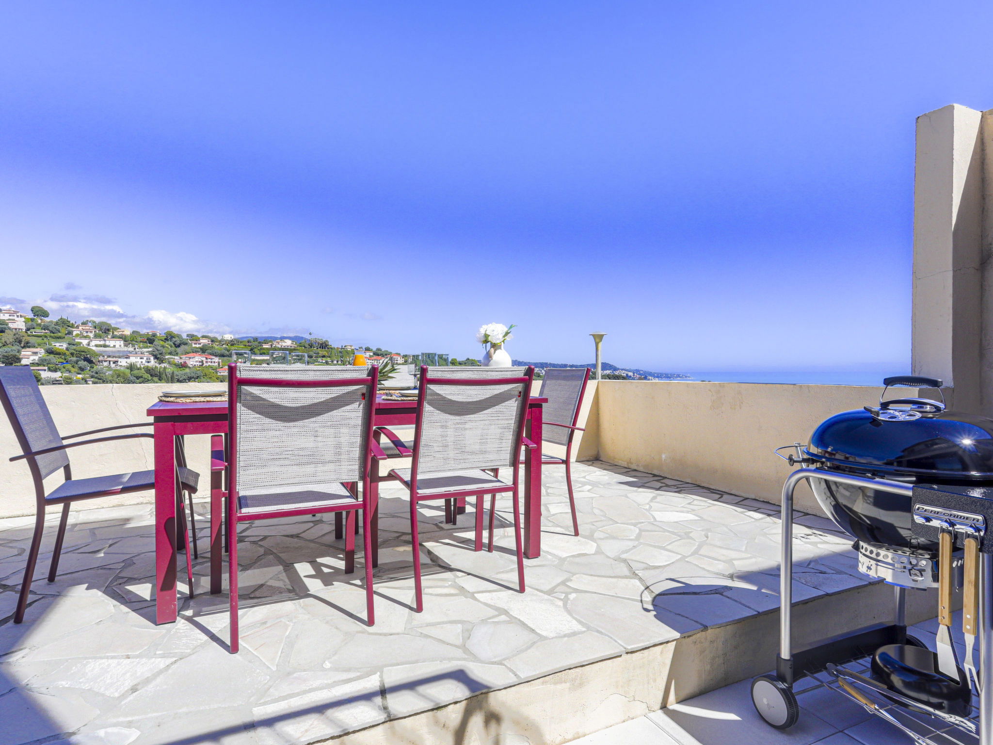 6-room house 130 m2 on 2 levels, south-east facing position. Spacious and bright, renovated in 2025, comfortable and modern furnishings: large living/dining room with flat screen and air conditioning. Exit to the terrace. 1 room with 1 double bed (140 cm, length 190 cm). Large, open kitchen (oven, dishwasher, 4 induction hot plates, toaster, kettle, microwave, electric coffee machine, Capsules for coffee machine (Nespresso) extra). Exit to the terrace. Shower, sep. WC. Electric heating. Upper floor: small living room with air conditioning. Exit to the terrace. 1 room with 2 beds (90 cm, length 190 cm). 1 room with 1 double bed (140 cm, length 190 cm). 1 room with 1 french bed (180 cm, length 200 cm). Shower/WC, sep. WC. Large terrace 50 m2, south-east facing position. Barbecue. Marvellous panoramic view of the sea and the mountains. Facilities: washing machine, iron, baby cot, hair dryer. Internet (WiFi, free). Garage (1 car). Please note: suitable for families. Non-smoking house. Smoke alarm. Offer by a private individual according to Art. 155, IV of CGI. 06088036506AK