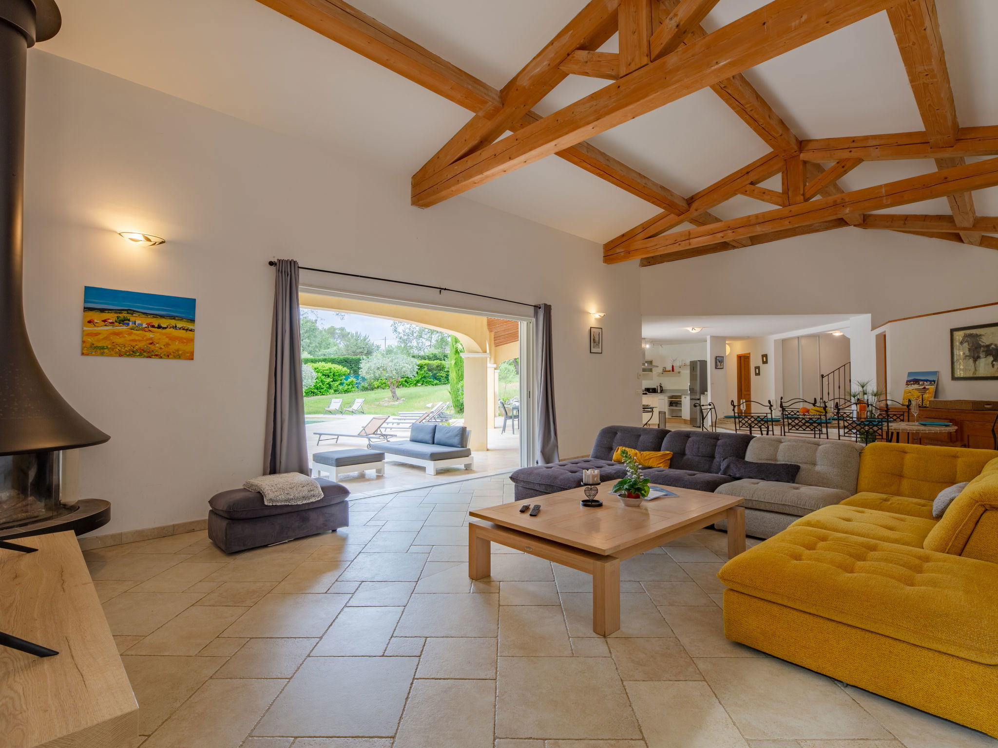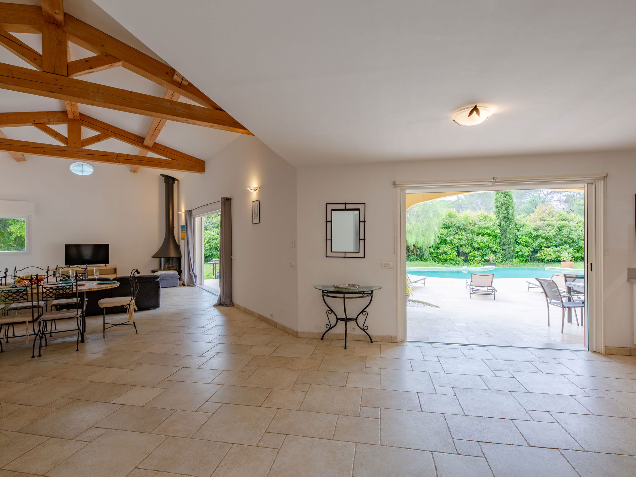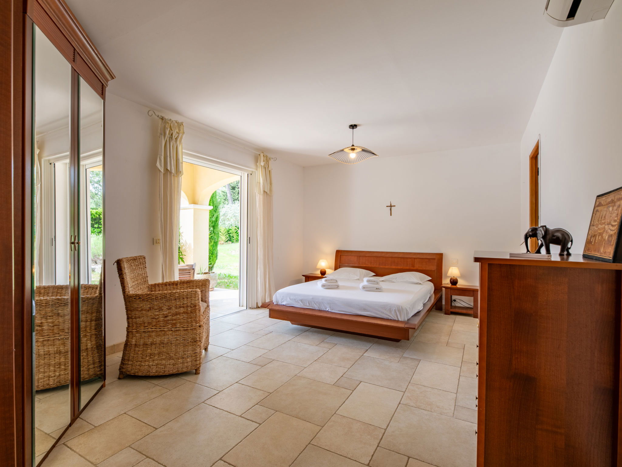 "La Pimaleanne", 5-room house 200 m2 on 2 levels, south facing position. Comfortable and stylish furnishings: large living/dining room with open-hearth fireplace and TV. Exit to the terrace. 1 room with 1 french bed (160 cm, length 200 cm), bath/shower/WC. Exit to the terrace. 1 room with 1 french bed (140 cm, length 190 cm). Open kitchen (oven, dishwasher, 3 induction hot plates, toaster, kettle, microwave, freezer, electric coffee machine). Shower/WC. Upper floor: 2 rooms, each room with 1 french bed (140 cm, length 190 cm). Bath/shower, sep. WC. Electric heating, air-conditioning. Large terrace 60 m2 partly roofed, south facing position. Terrace furniture, barbecue, deck chairs (8). Facilities: washing machine, dryer. Internet (WiFi, free). Please note: suitable for families. Non-smoking house. Smoke alarm. Offer by a private individual according to Art. 155, IV of CGI. 061052025015