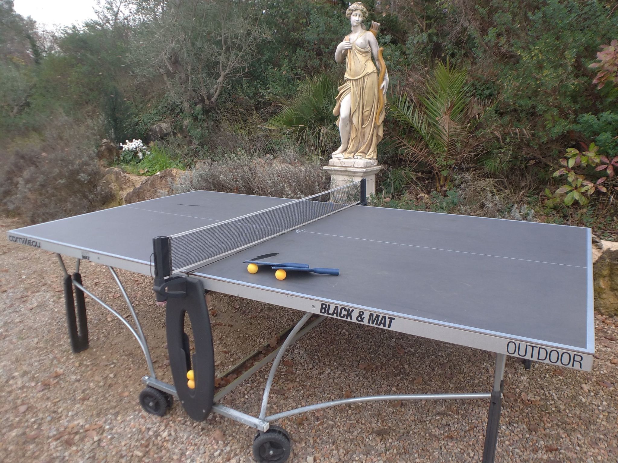 Outdoor table-tennis table and outdoor space for fitness exercise.